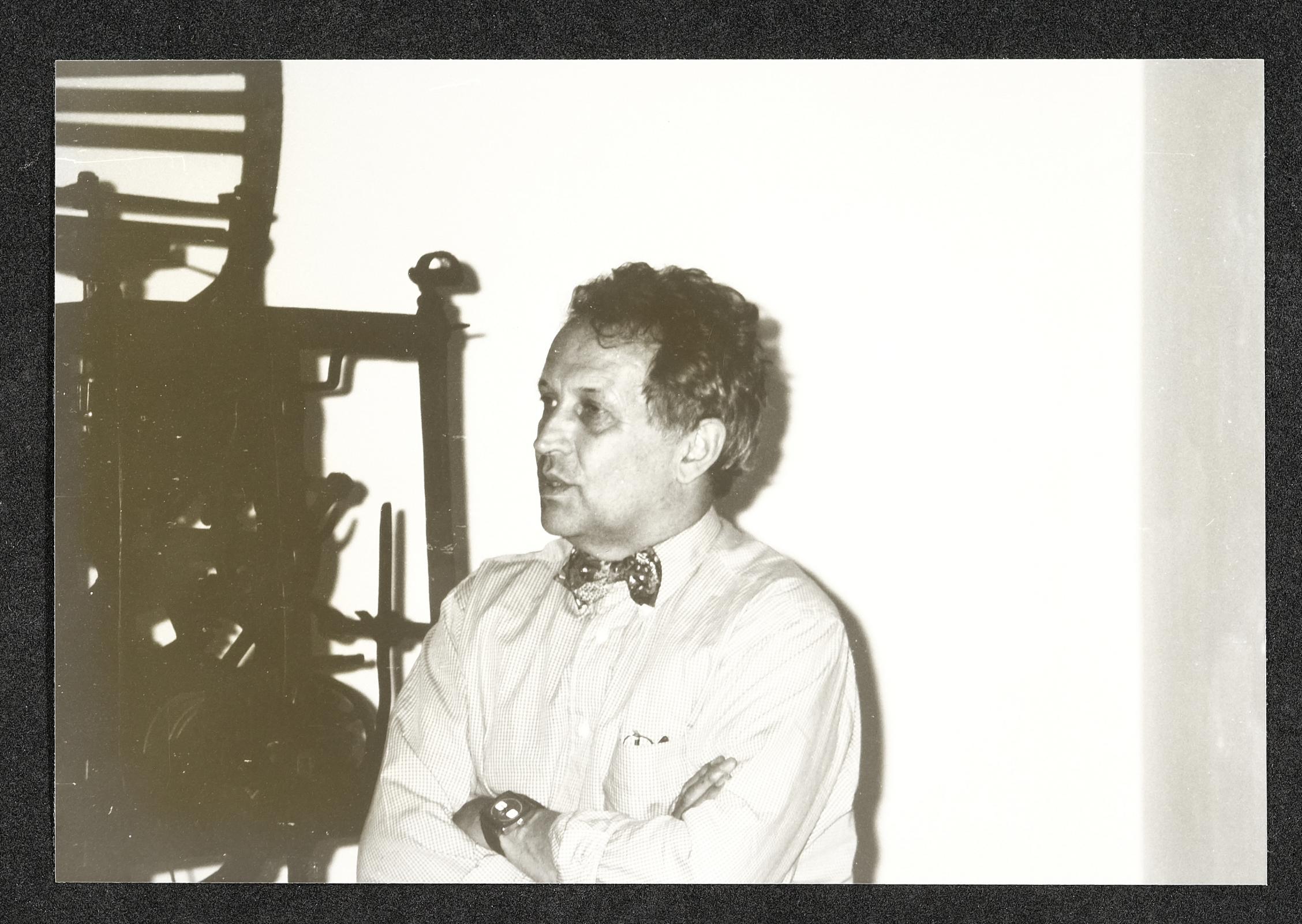 | Beschreibung | Uhrmachermeister Friedrich Schmollgruber vor einem seiner Uhren-Sammelobjekte |