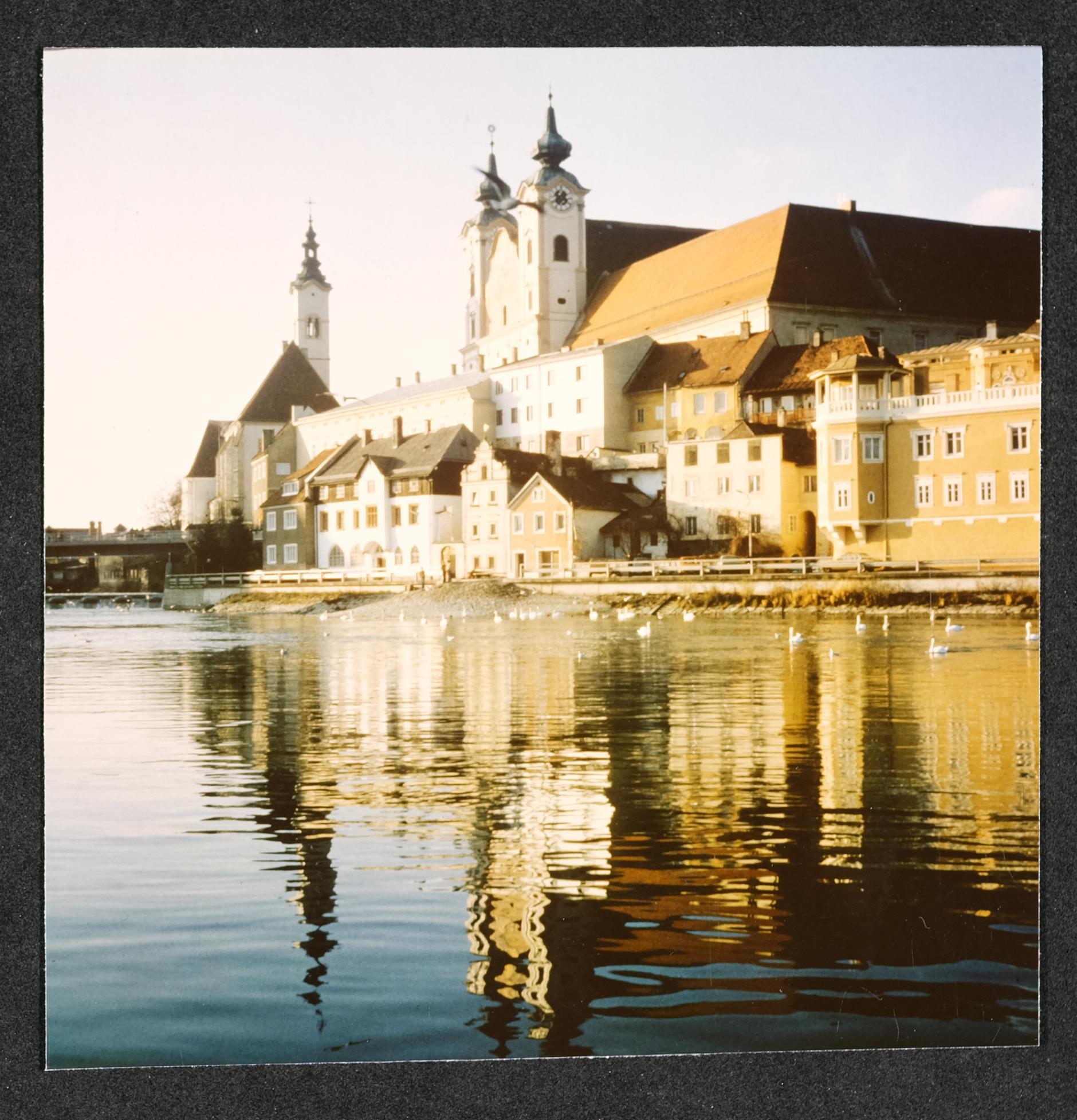 | Beschreibung | Ansicht von Steyr, Blick vom rechten Ennsufer zum Ortskai, Bürgerspital und Michaelerkirche |