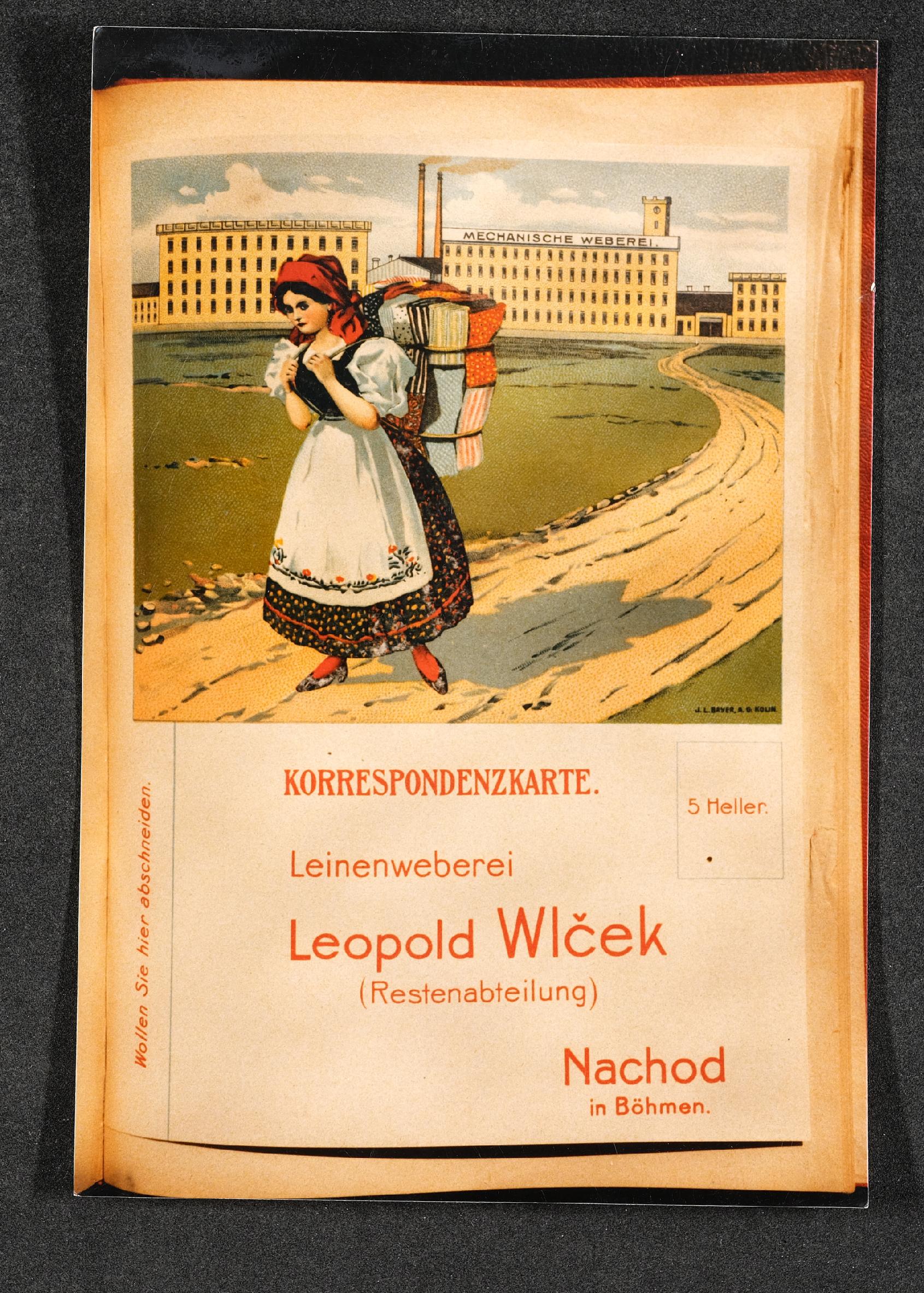 | Beschreibung | Leinenweberei, Korrespondenzkarte in einem Buch oder einer Zeitung zum Ausschneiden |