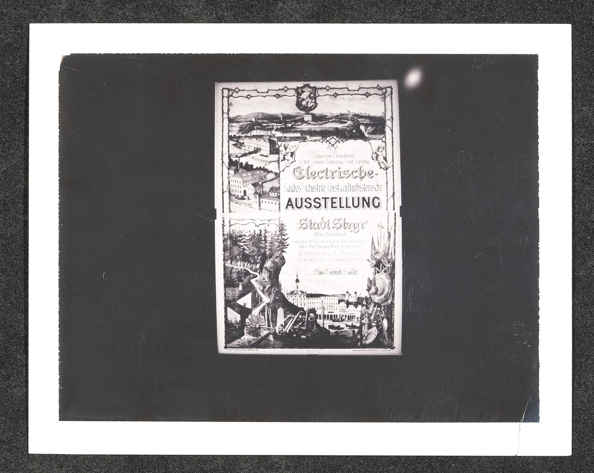 | Beschreibung | Museum Arbeitswelt, Fotografie des Plakates "Electrische Landes-Industrie-Forst u. culturhistorische Ausstellung Stadt Steyr" |