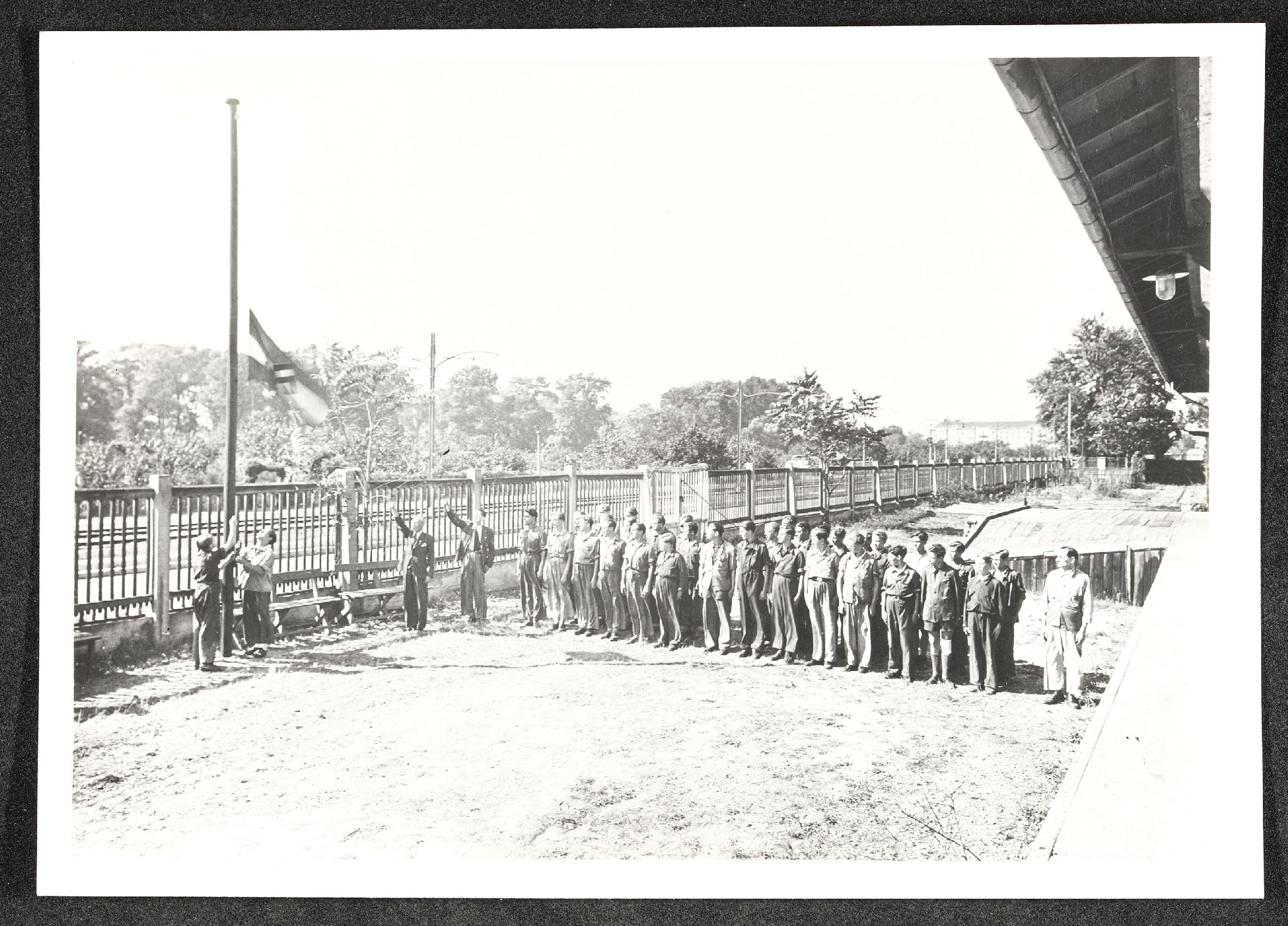 | Beschreibung | Hissen einer Fahne, Hitlergruß, Arbeiter |