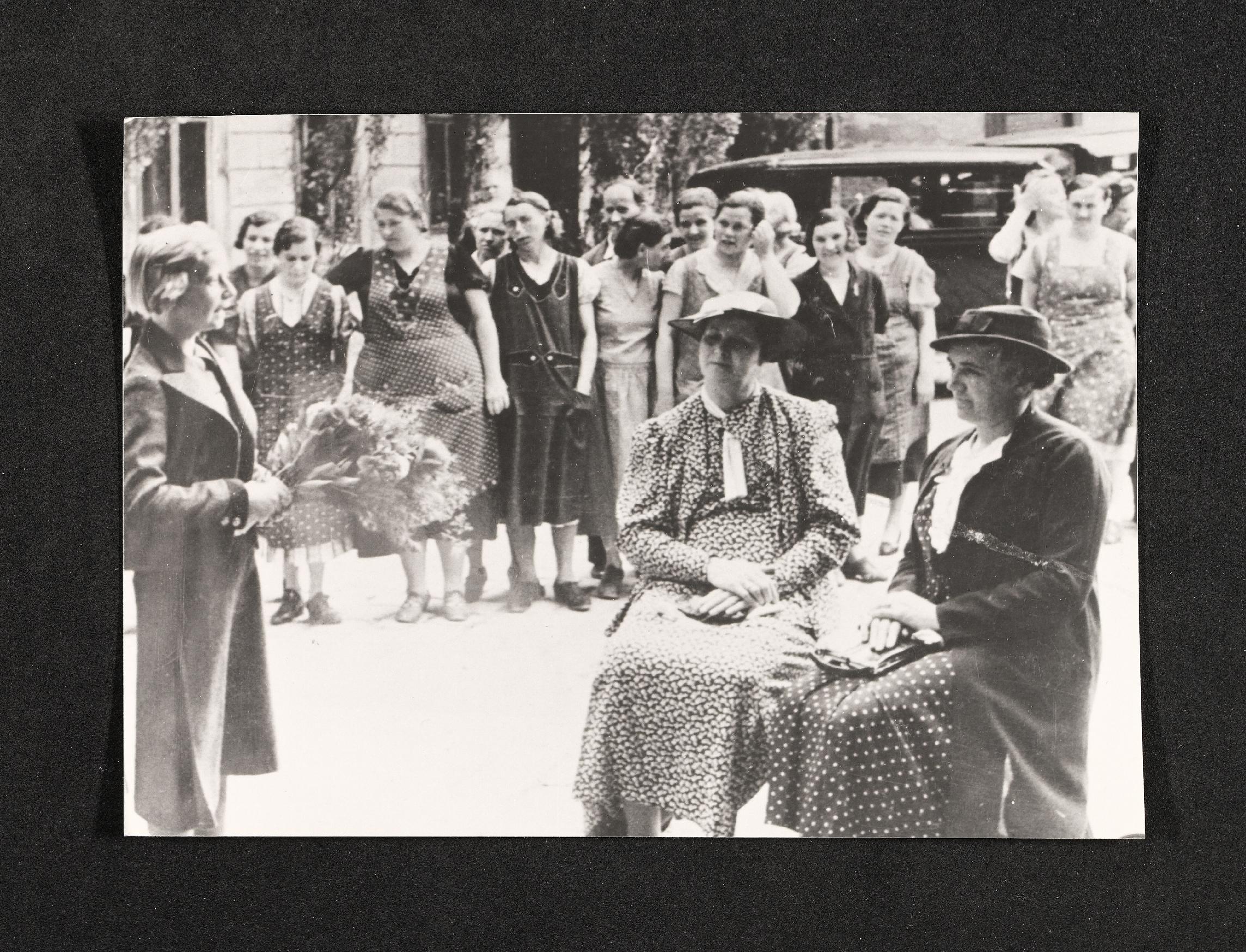 | Beschreibung | Empfang, Kind überreicht Blumen |
