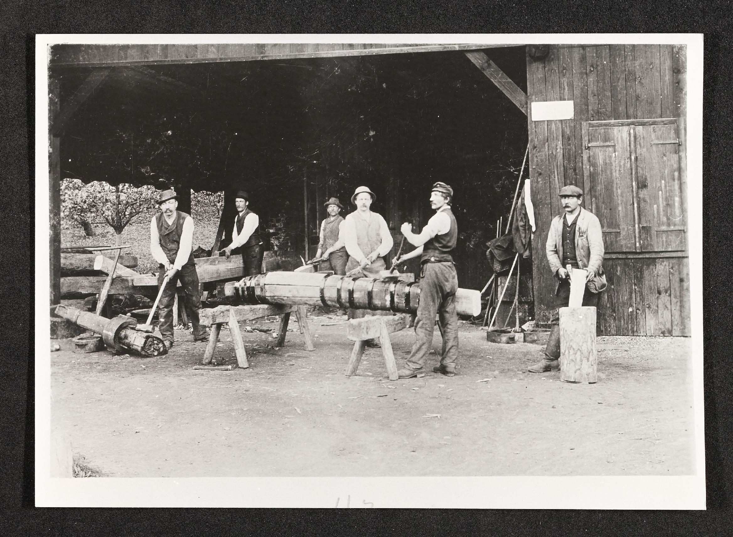 | Beschreibung | Firma Redtenbacher Sensenwerk, Männer bei der Schmiedearbeit |