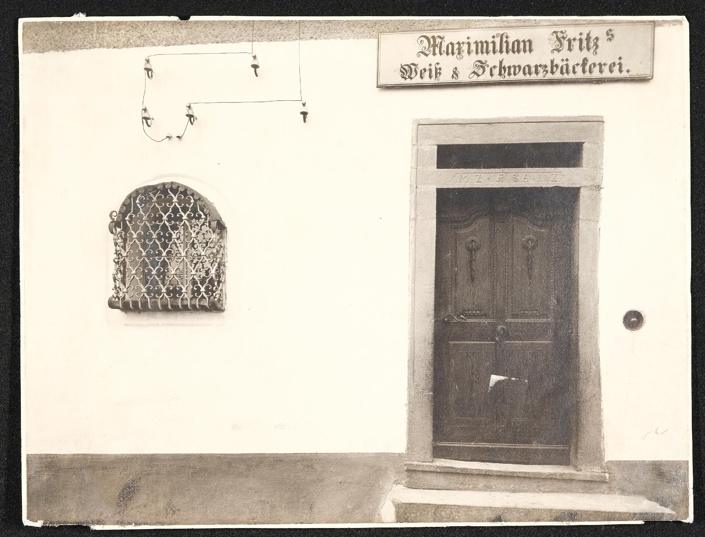 | Beschreibung | Fenstergitter und Eingangstüre der Weiß & Schwarzbäckerei Maximilian Fritz in Sierninghofen bei Steyr. Das Datum der Aufnahme ist nicht bekannt. |