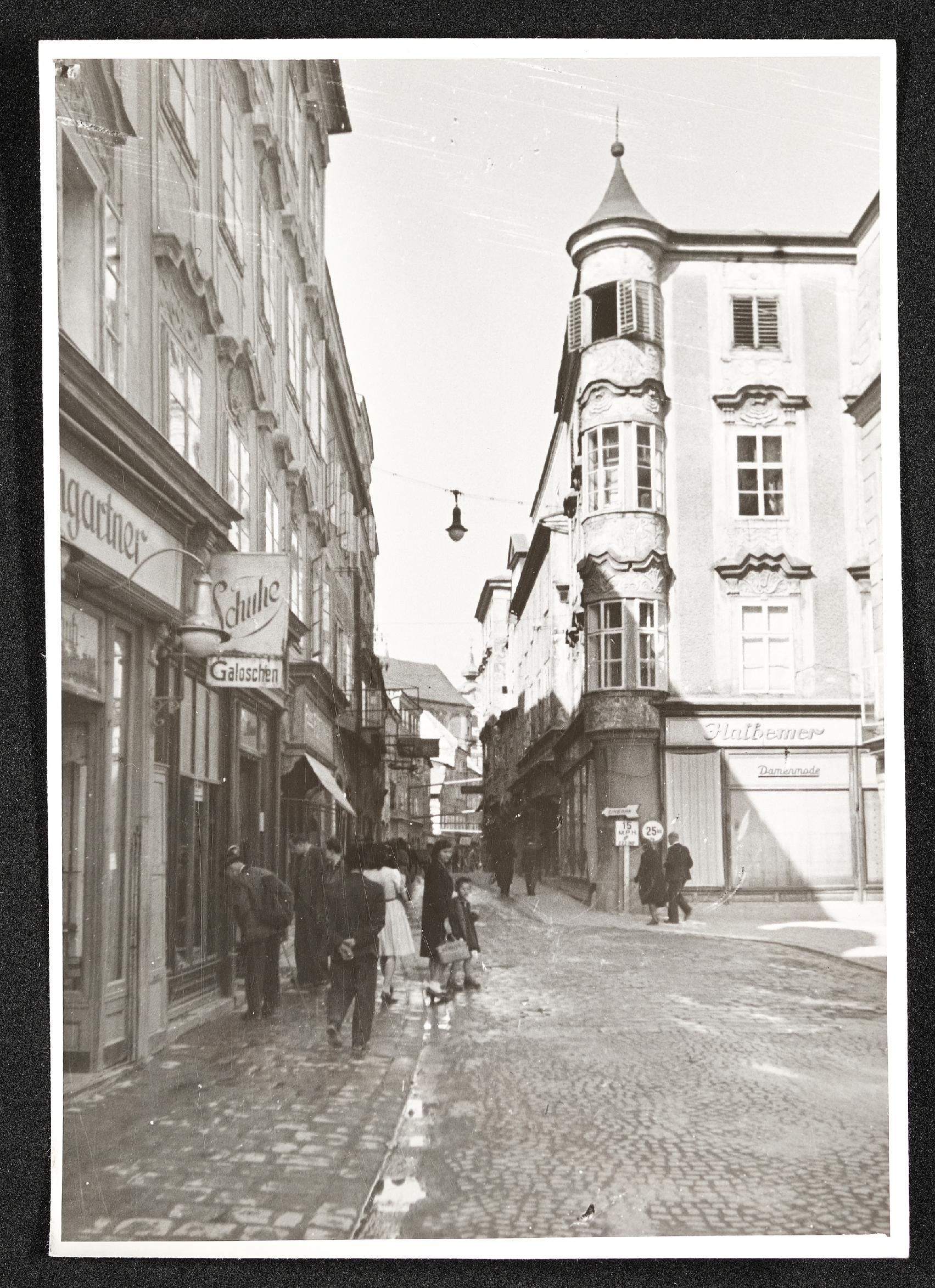 | Beschreibung | Blick vom Stadtplatz in die Enge Gasse in Steyr (um 1950) |
