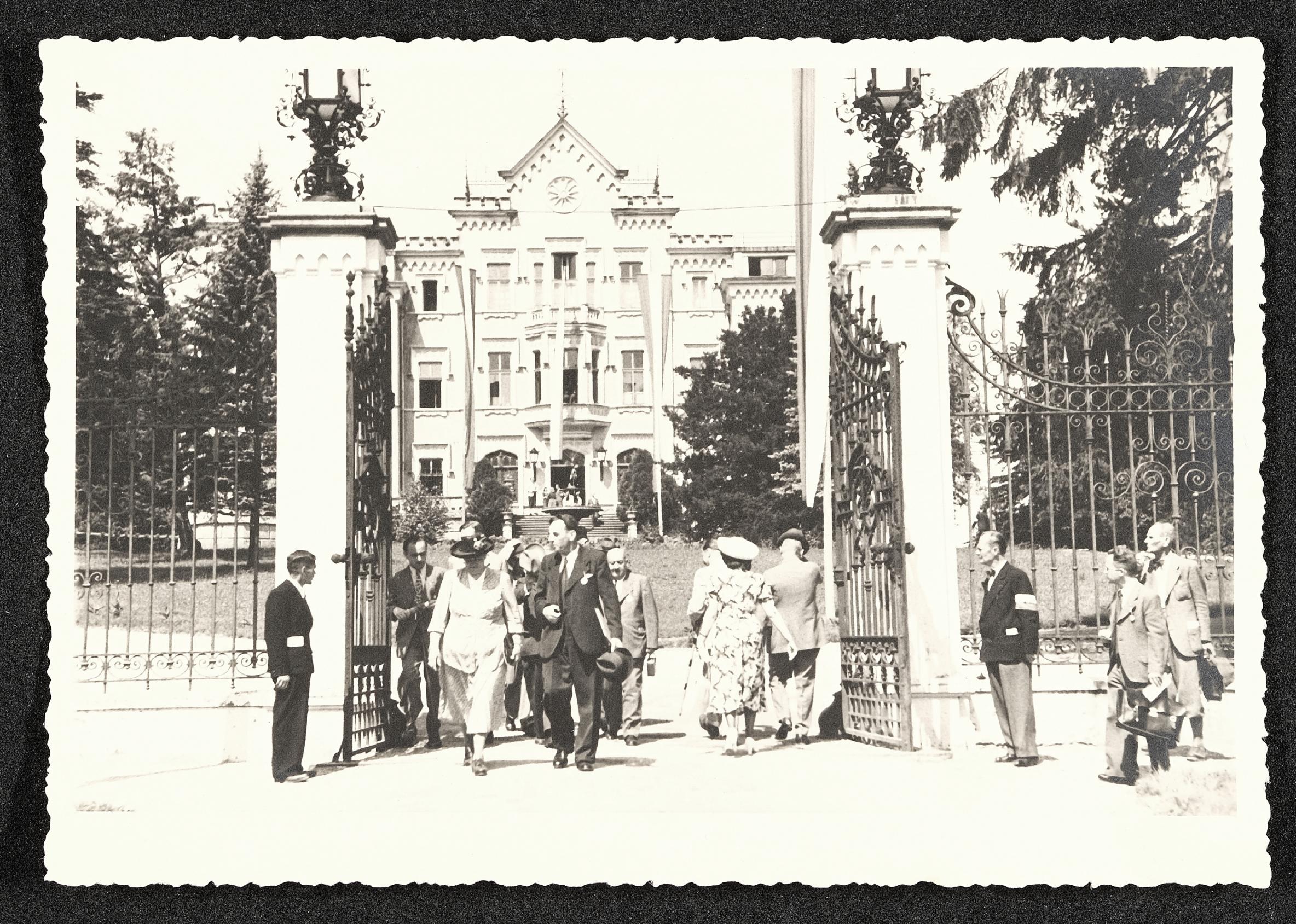 | Beschreibung | Gewerbeausstellung in Steyr 1948, Bürgermeister Leopold Steinbrecher verlässt das Gelände des Schloss Voglsang. |