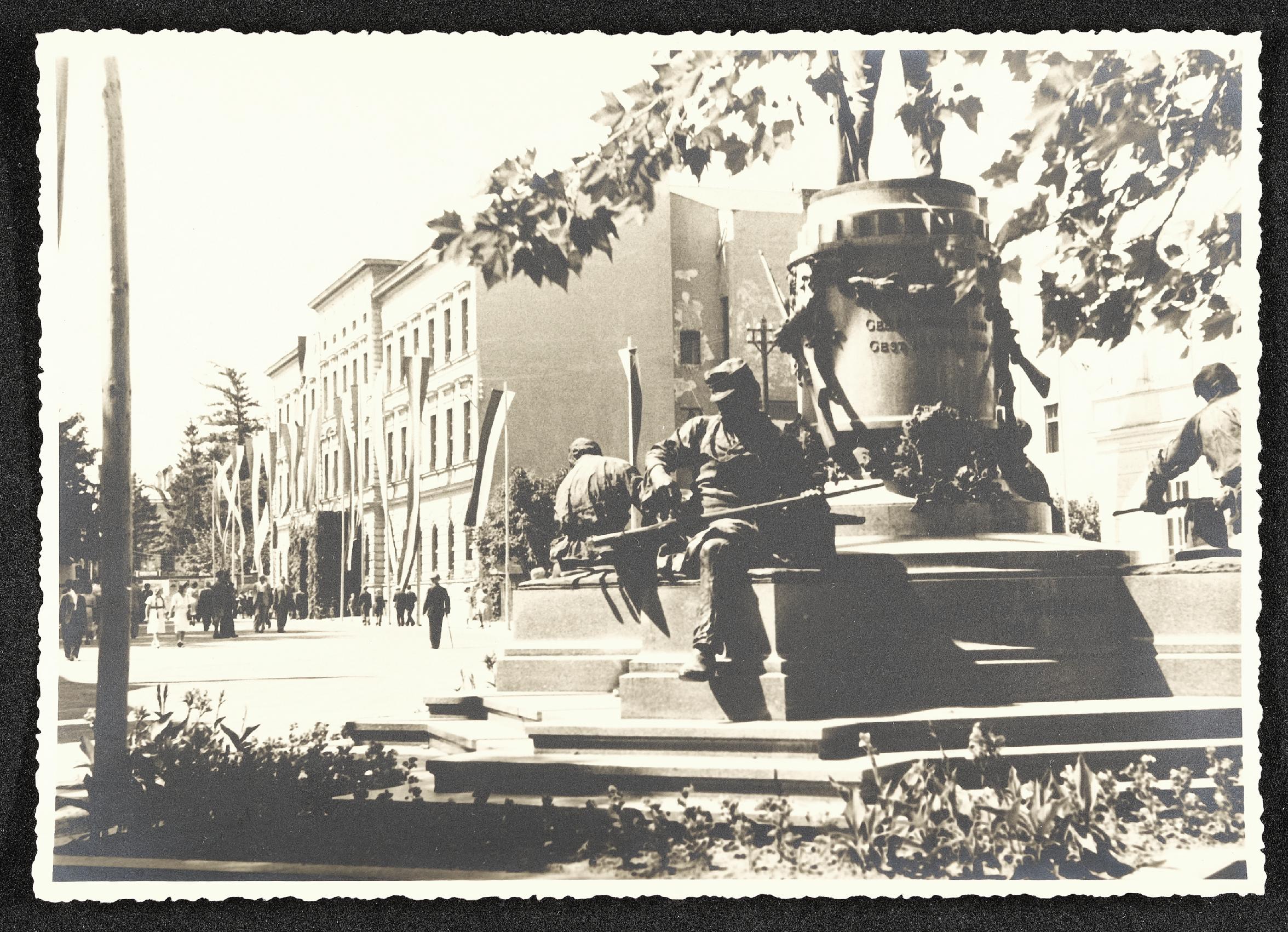 | Beschreibung | Gewerbeausstellung in Steyr 1948, Werndl-Denkmal und Ausstellungshaus (Hauptschule) in der Handel-Mazzetti-Promenade, Steyr |