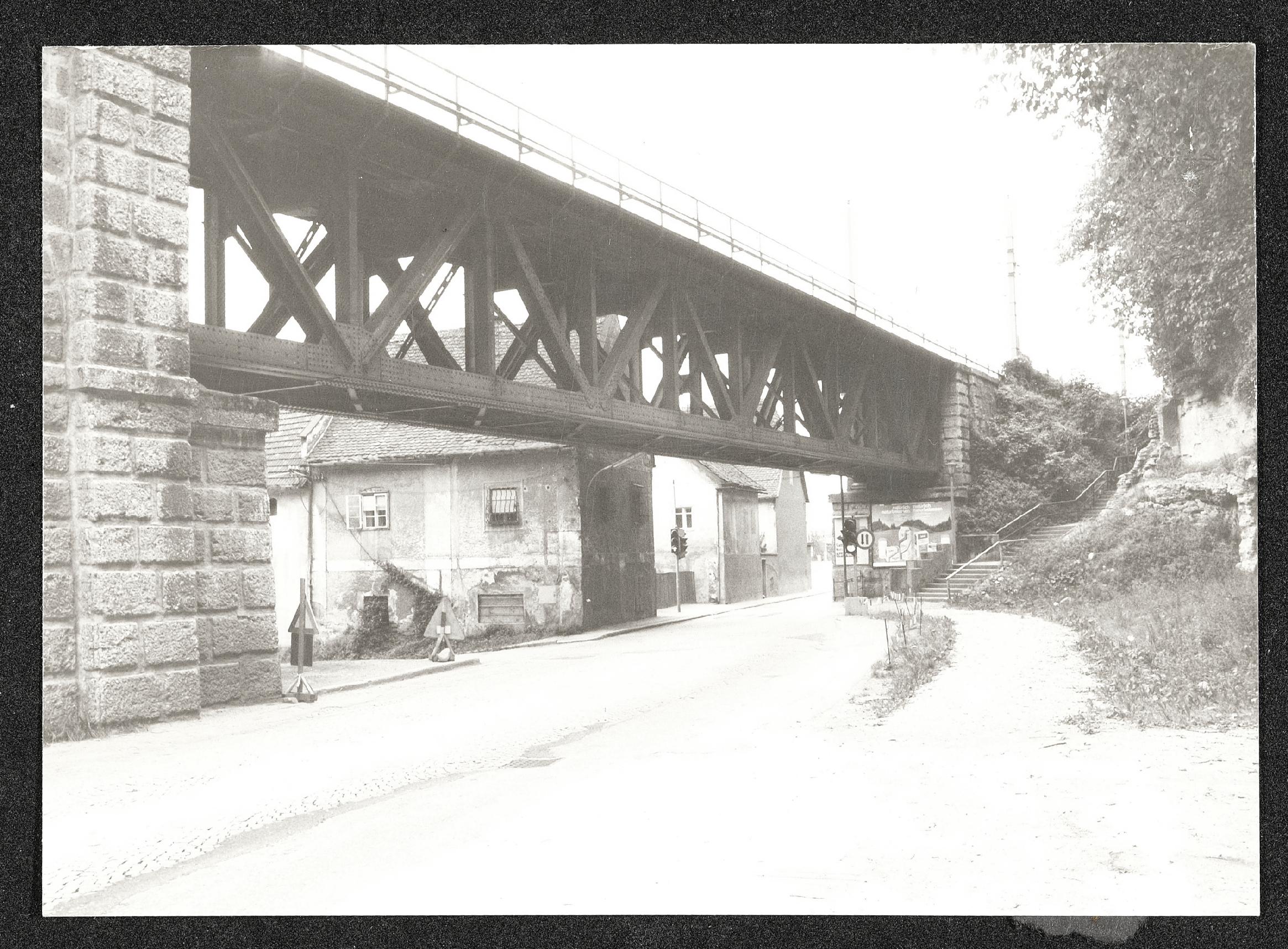 | Beschreibung | Jänner 1978, Blickrichtung stadteinwärts, Kreuzung Eisenstraße-Viaduktgasse in Steyr vor dem Umbau, die Stiege führt auf die Ennsleite |