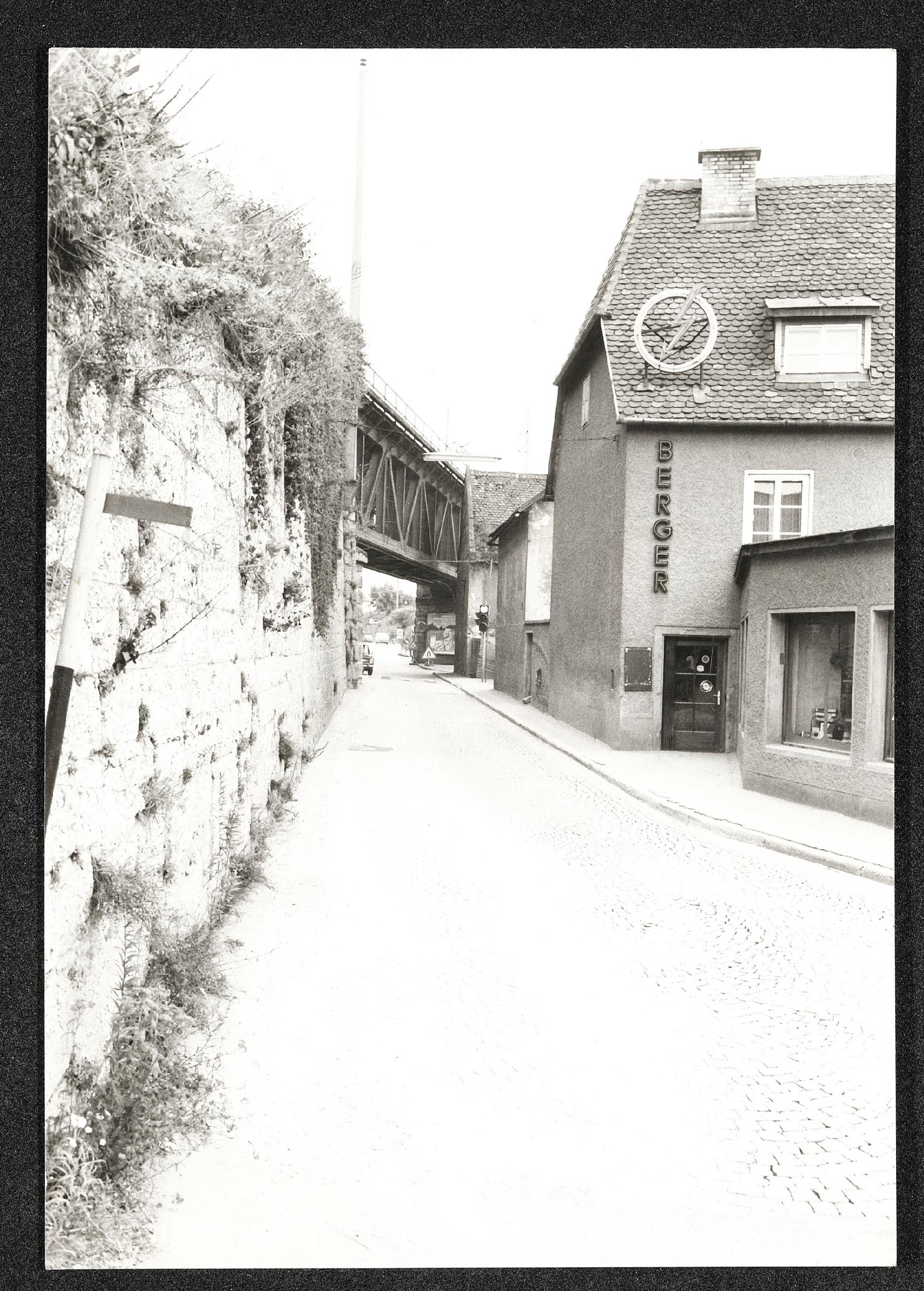 | Beschreibung | Jänner 1978, Blickrichtung stadtauswärts zum Viadukt in der Eisenstraße in Steyr vor dem Umbau |