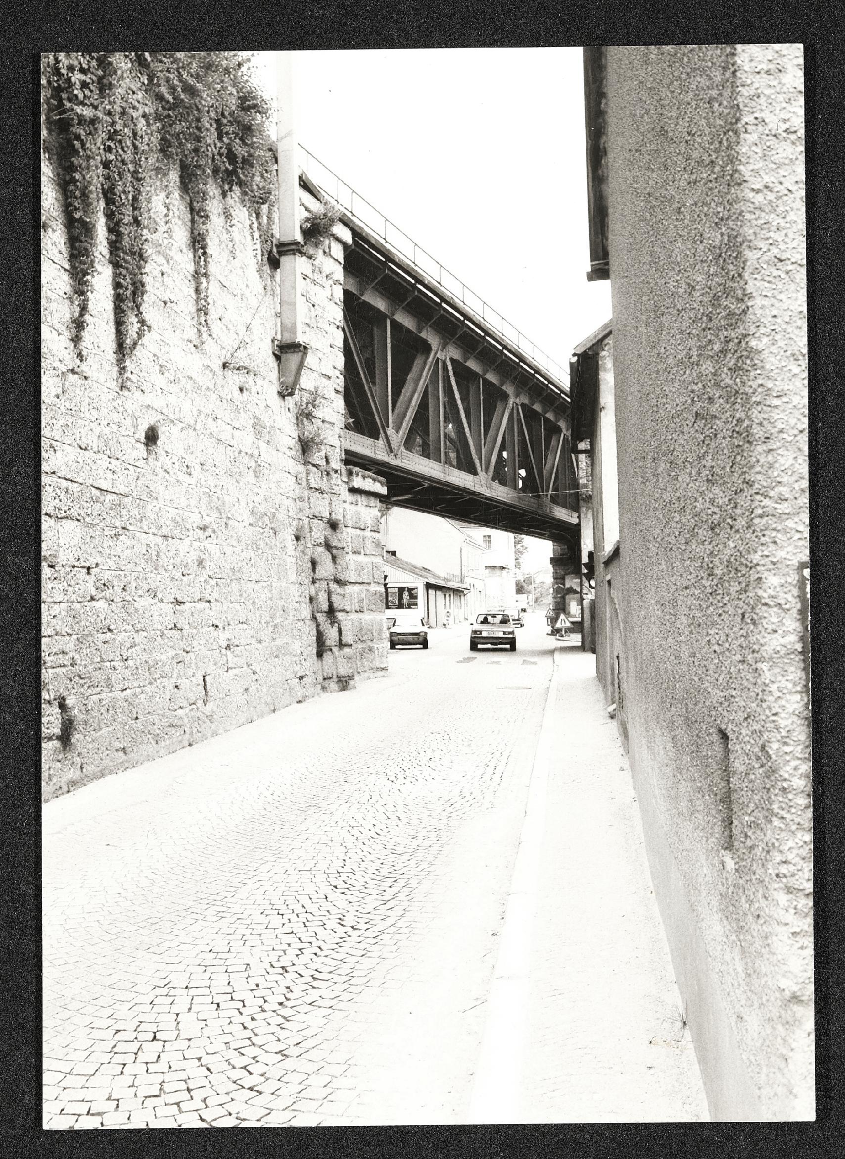 | Beschreibung | Jänner 1978, Blickrichtung stadtauswärts zum Viadukt in der Eisenstraße in Steyr vor dem Umbau |