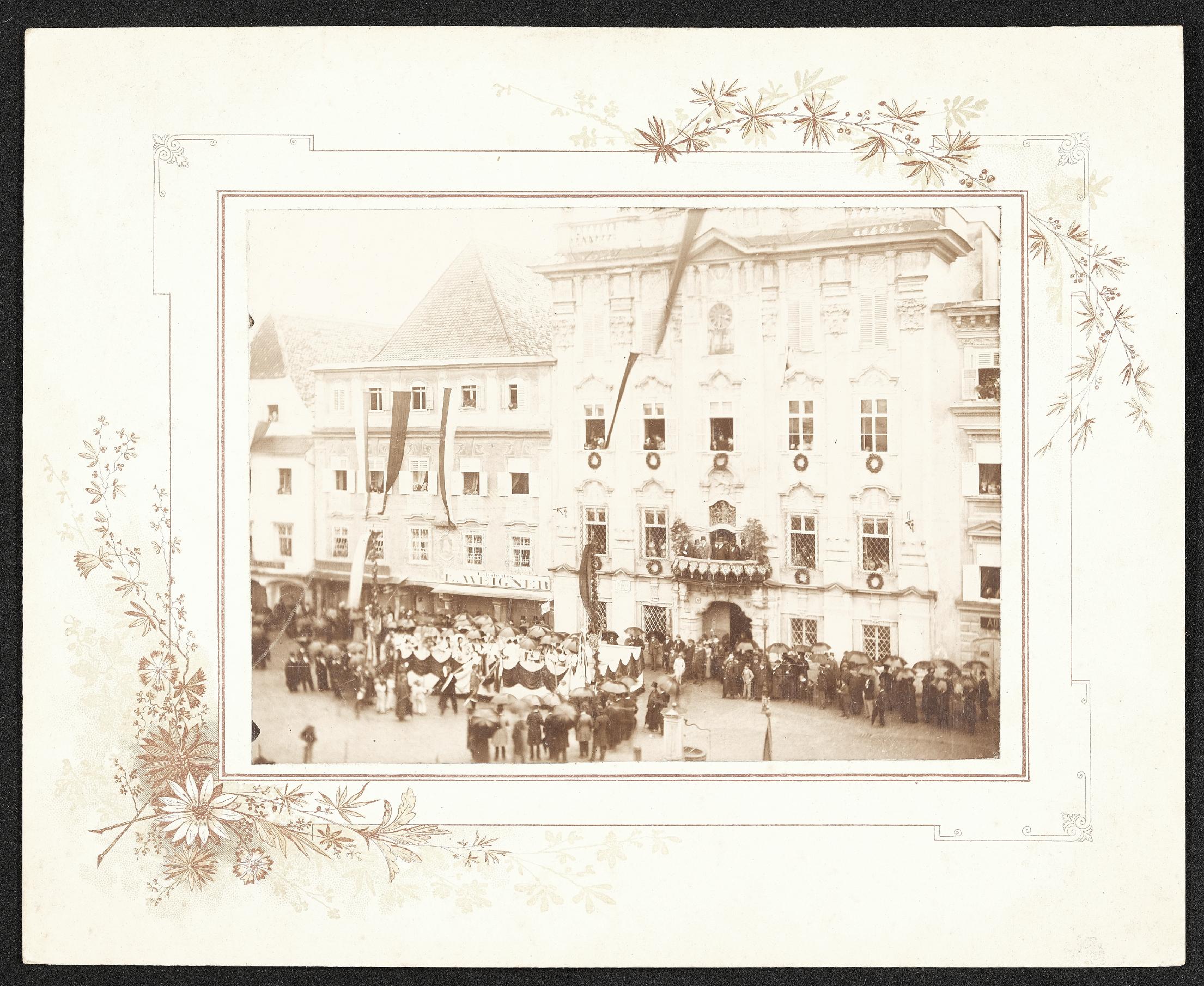 | Beschreibung | Festakt am Stadtplatz Steyr, Redner auf dem Balkon des Steyrer Rathauses. Das Datum der Aufnahme ist nicht bekannt. |