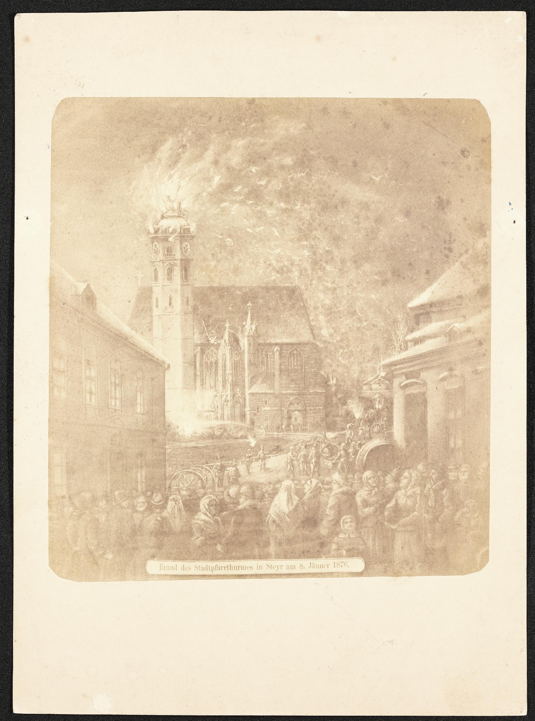 | Beschreibung | Am 8. Jänner 1876 brennt der Turm der Stadtpfarrkirche in Steyr. |
