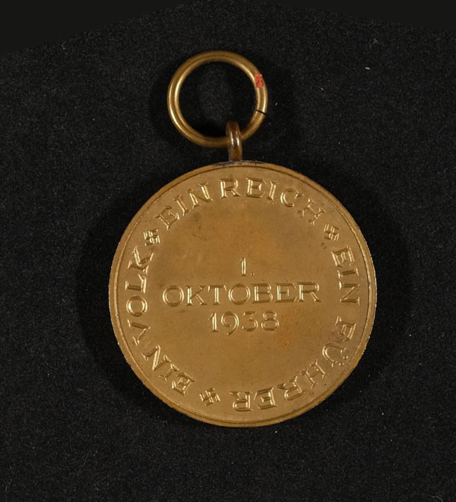| Beschreibung | Medaille zur Erinnerung an den 1. Oktober 1938, so genannte Sudeten-Medaille, wurde nach dem Münchner Abkommen 1938 von Adolf Hitler gestiftet |