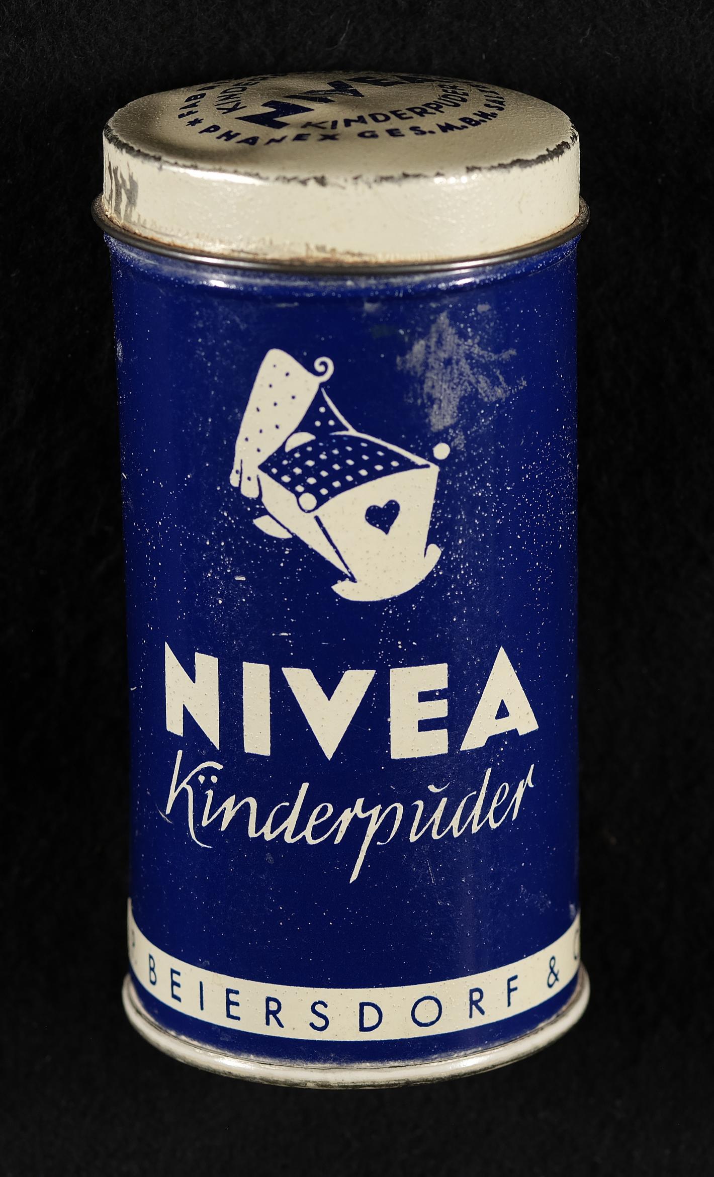 | Beschreibung | Kinderpuder der Marke Nivea, Beiersdorf & CoAG, Blechdose nachfüllbar, hergestellt von der Firma Phanex GmbH Salzburg |