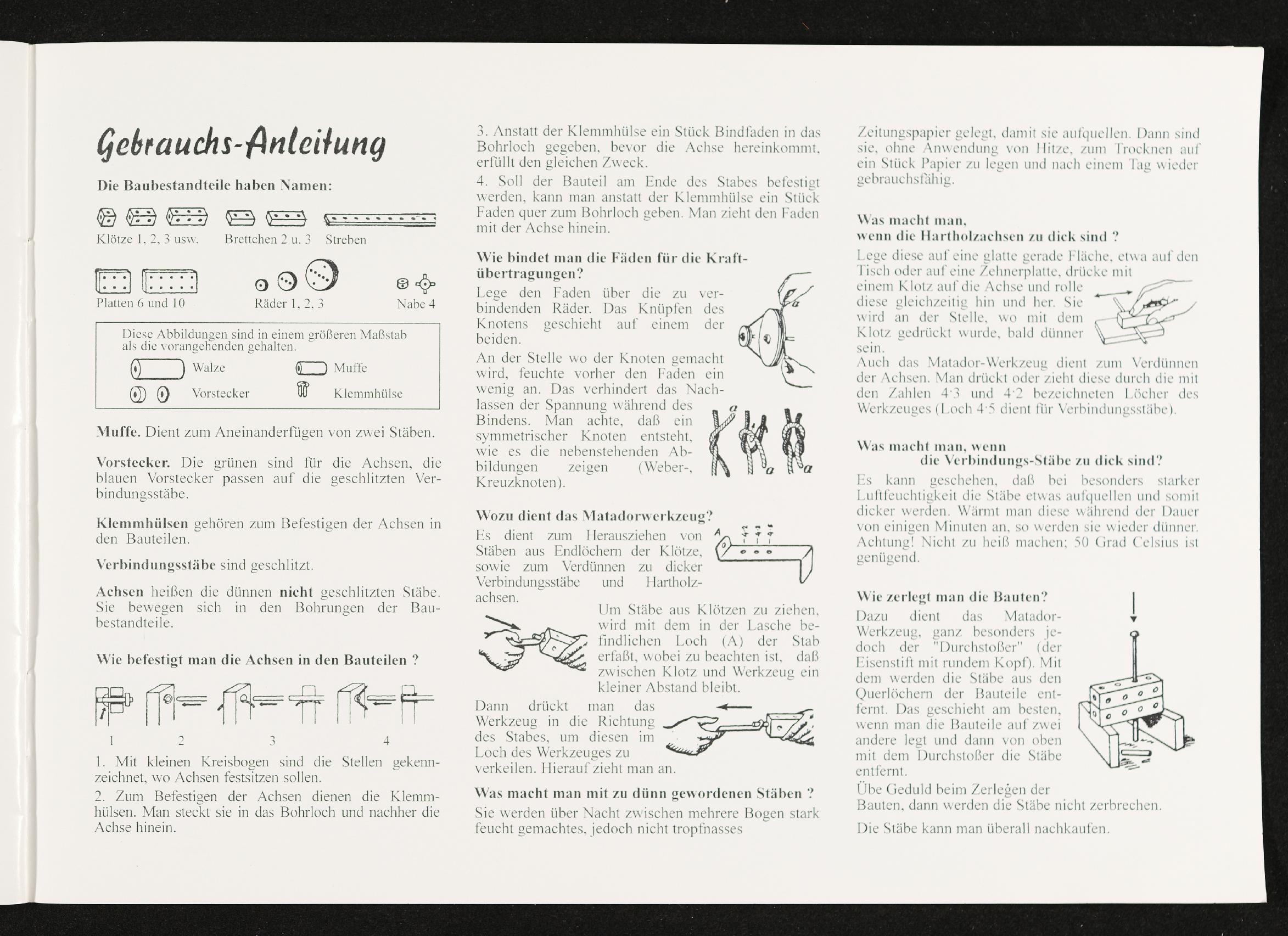 | Beschreibung | Vorlagenheft Matador Holzbaukasten Nr. 3 mit Gebrauchsanleitung, enthält 28 Vorlagen |
