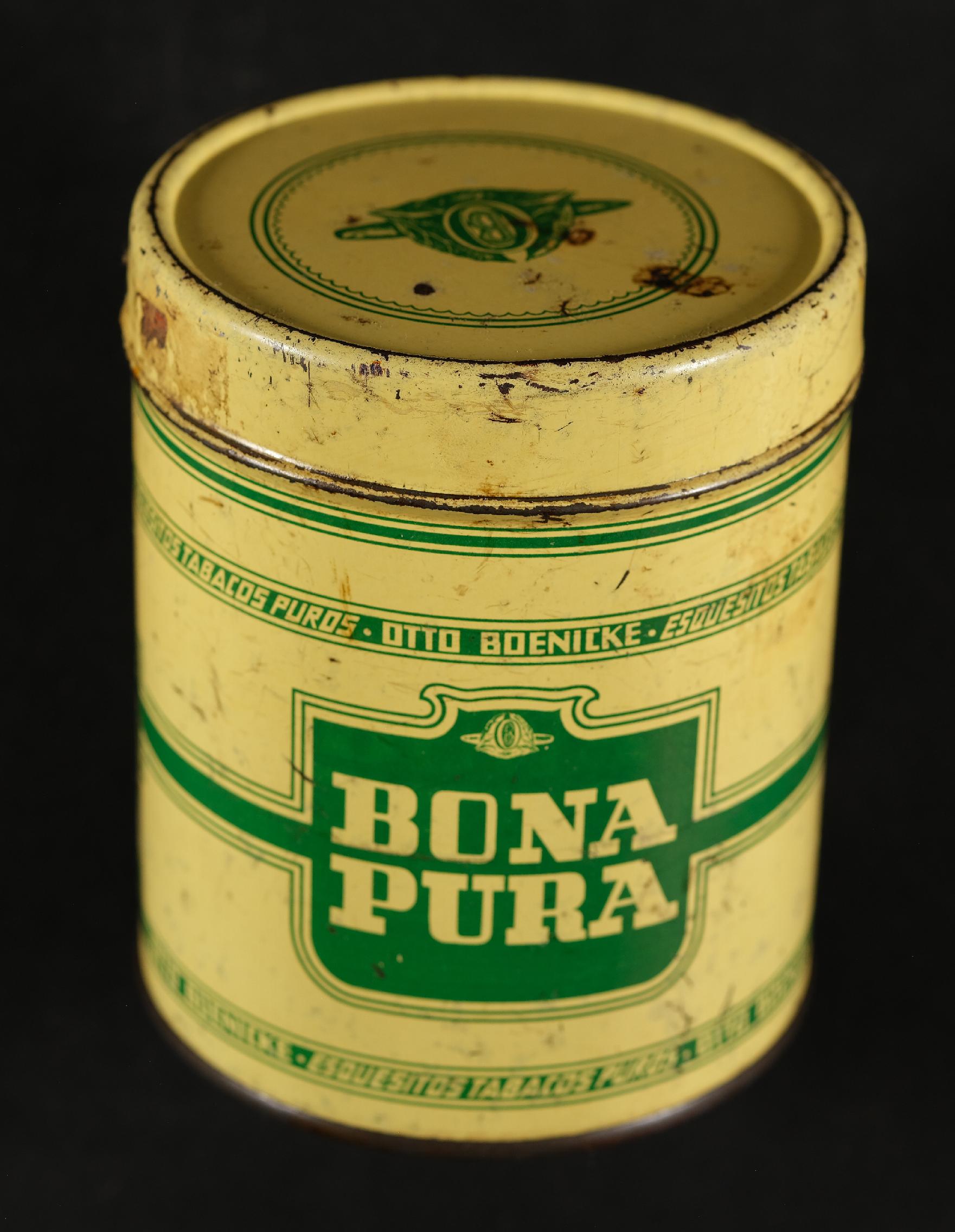 | Beschreibung | Blechdose, BONA PURA Tabacos, Otto Boenicke, 25 Stück farbmattiert, Deckel |