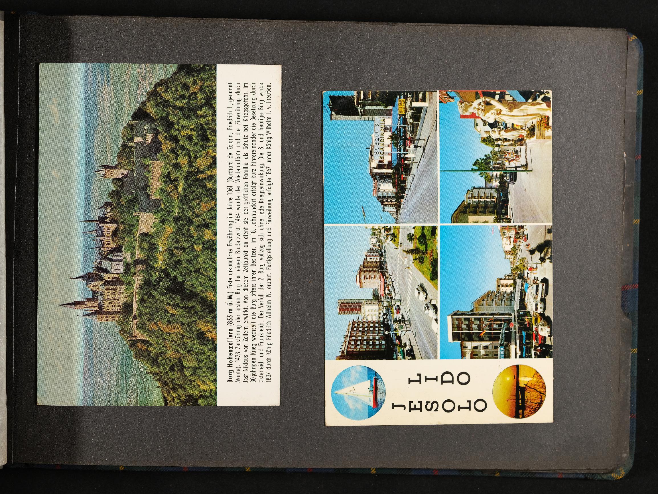 | Beschreibung | Privates Fotoalbum mit Urlaubsfotos, Burg Hohenzollern, Lido Jesolo |