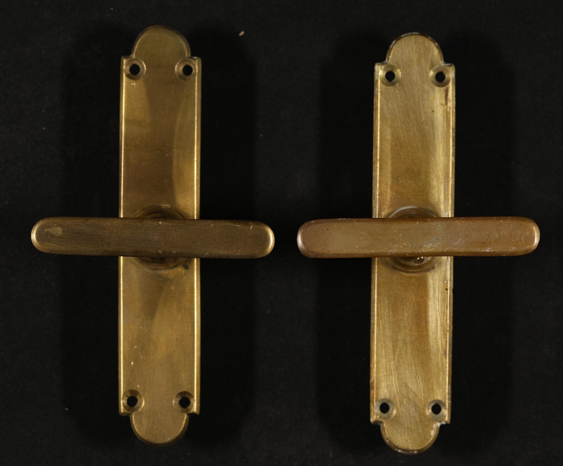 | Beschreibung | Zwei Fenstergriffe aus Messing, Ansicht Montageebene |