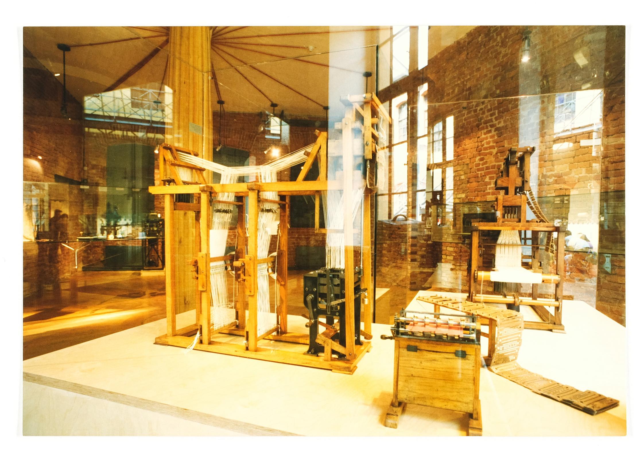 | Beschreibung | Ausstellungsobjekt Webstühle, Thema: Automation Steuerungsgeräte |