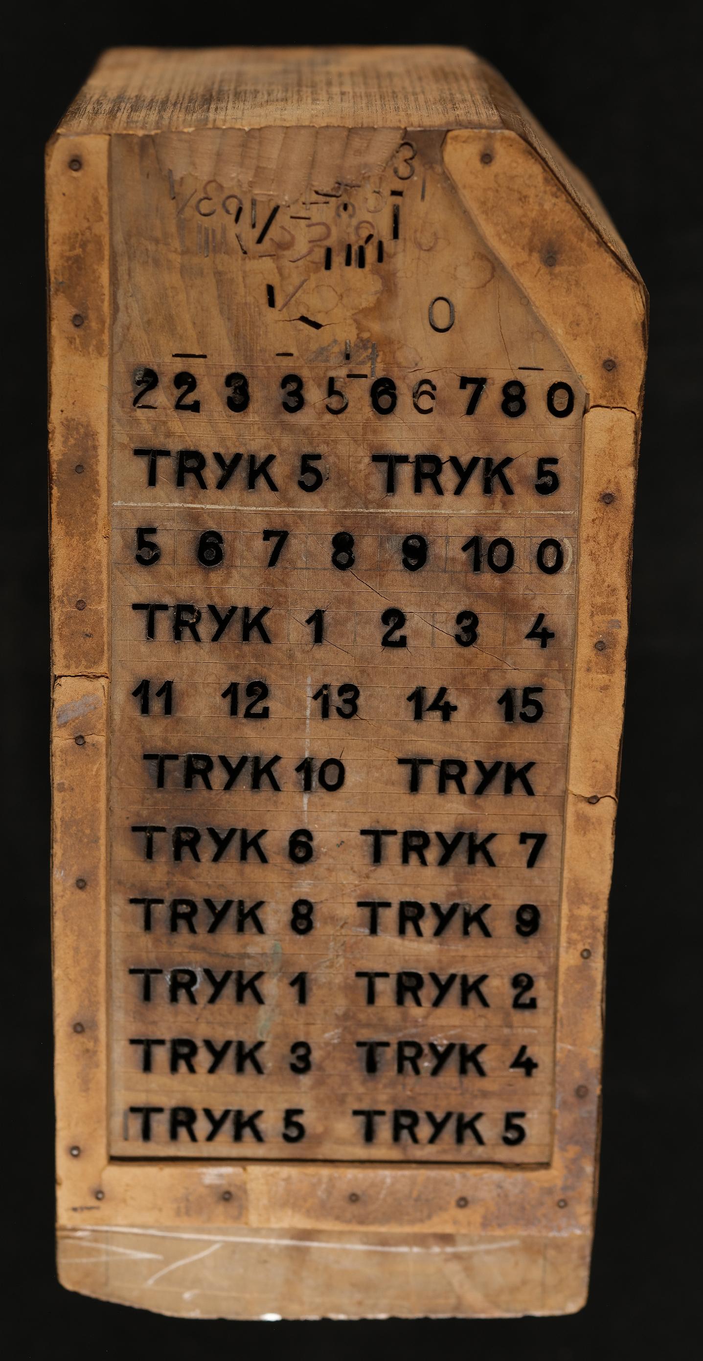 | Titel | Druckstock aus Holz mit Buchstaben und Zahlen |