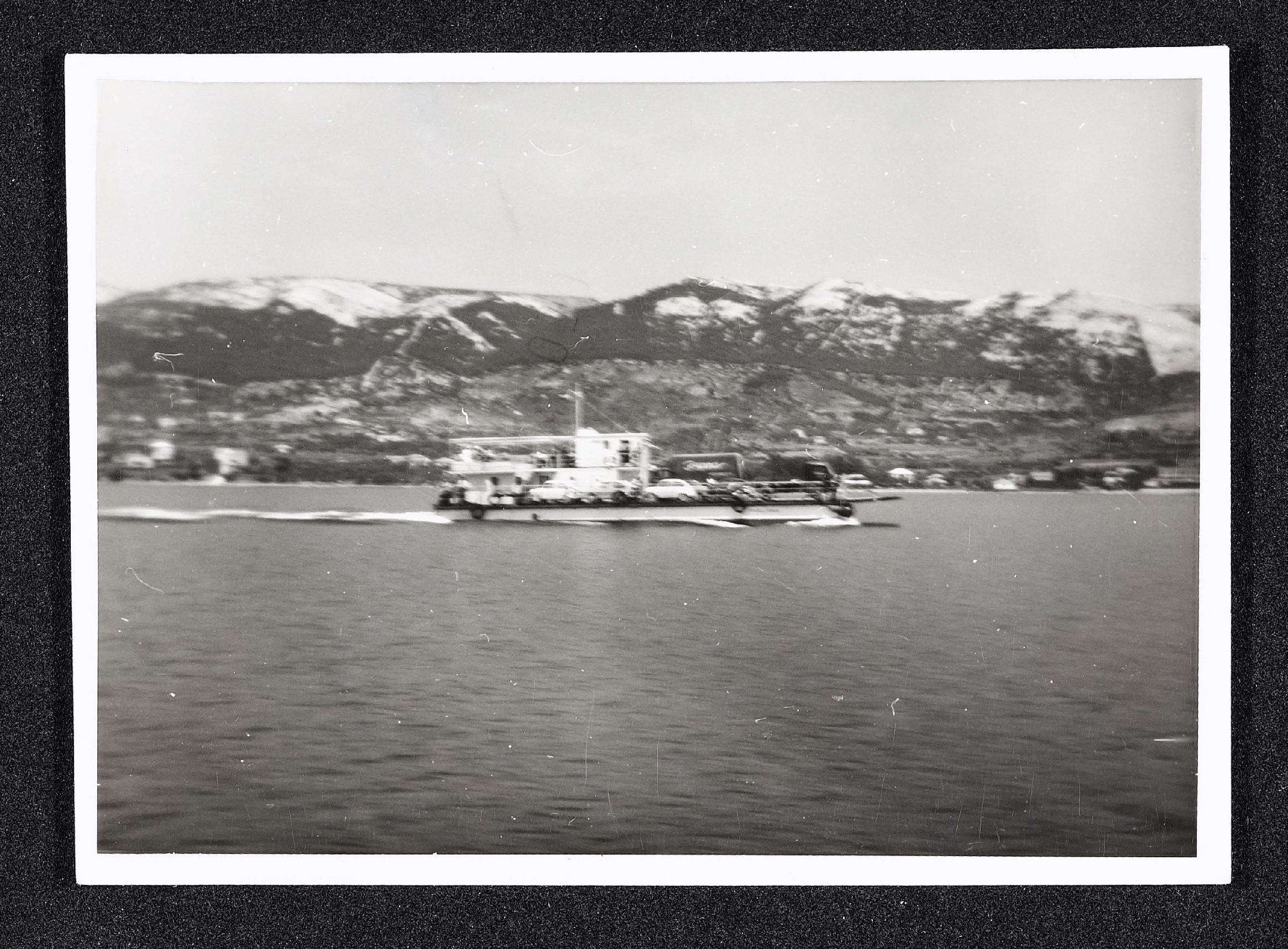 | Beschreibung | Große Inselfahrt Rab, Jugoslawien. Schiff am Wasser mit Landschaft im Hintergrund |