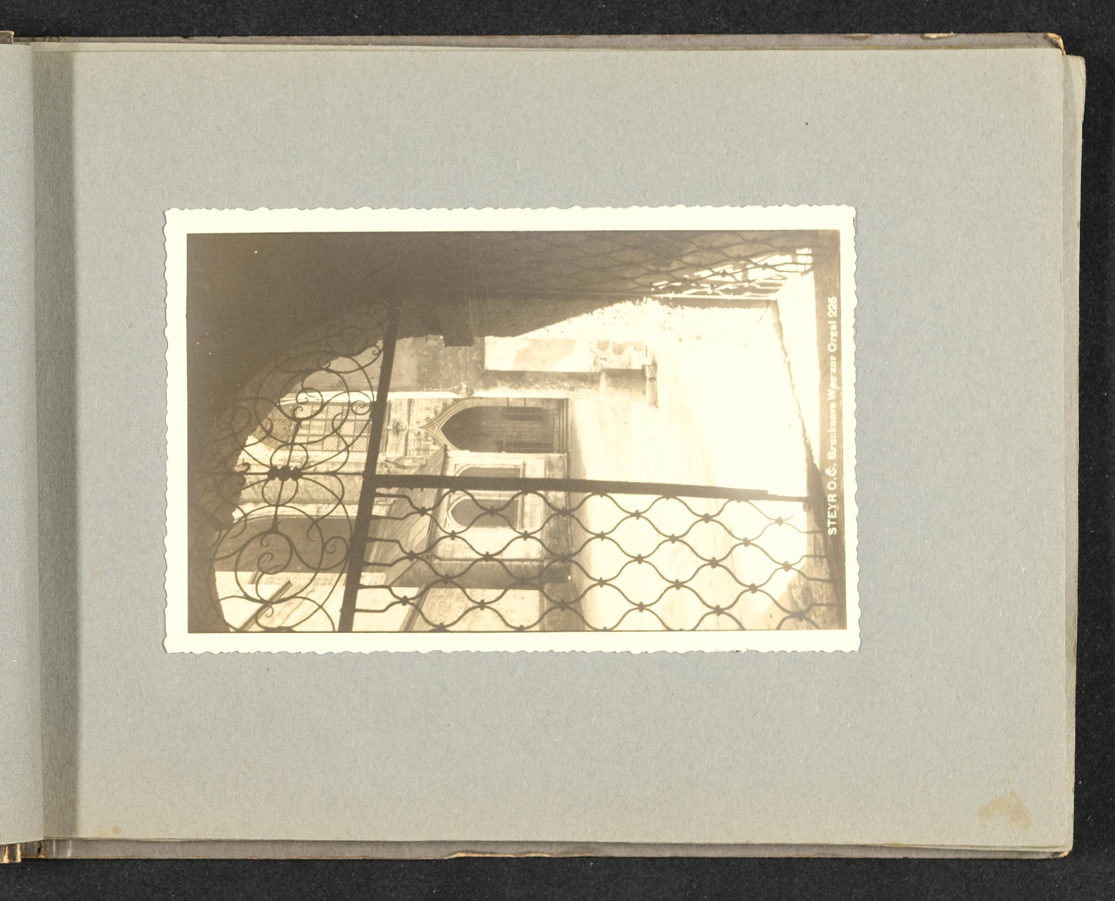 | Beschreibung | Bruckners Weg zur Orgel, Ansichtskarte mit Blick von Brucknerstiege durchs Gittertor |