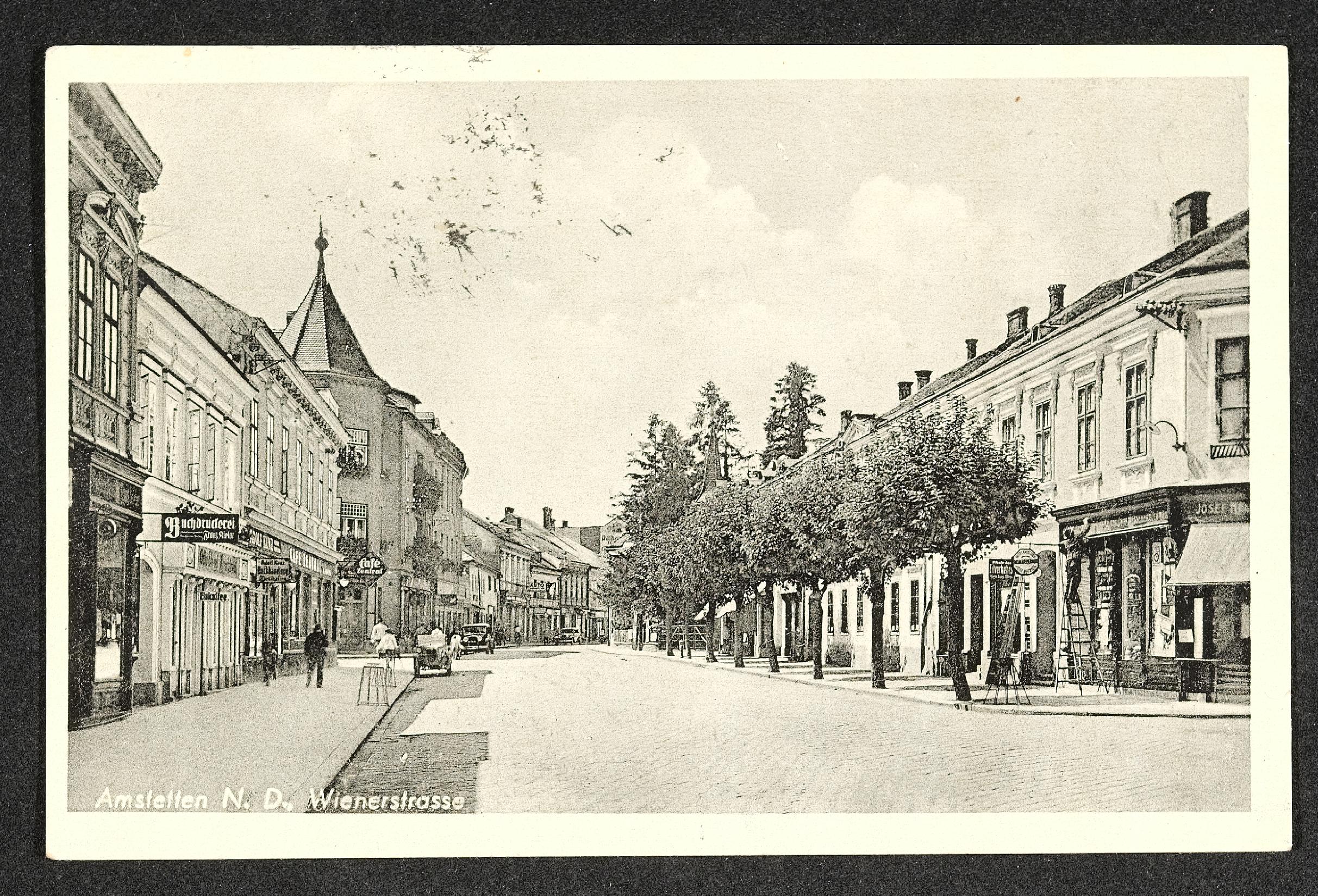 | Beschreibung | Ansichtskarte mit Motiv Amstetten, Wienerstrasse, und persönlicher Nachricht |