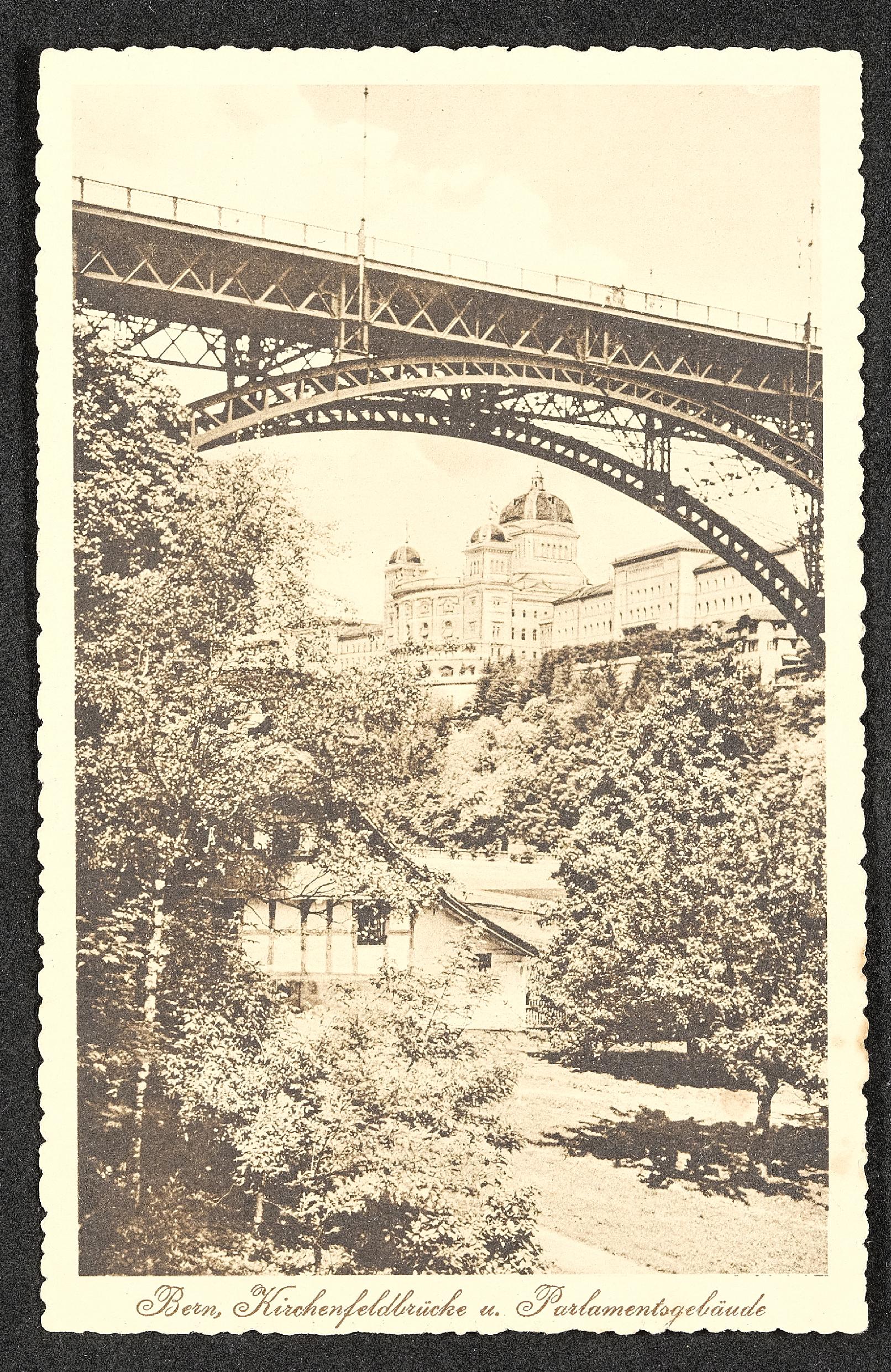 | Beschreibung | Ansichtskarte mit Motiv Bern, Kirchenfeldbrücke und Parlamentsgebäude und persönliche Nachricht |