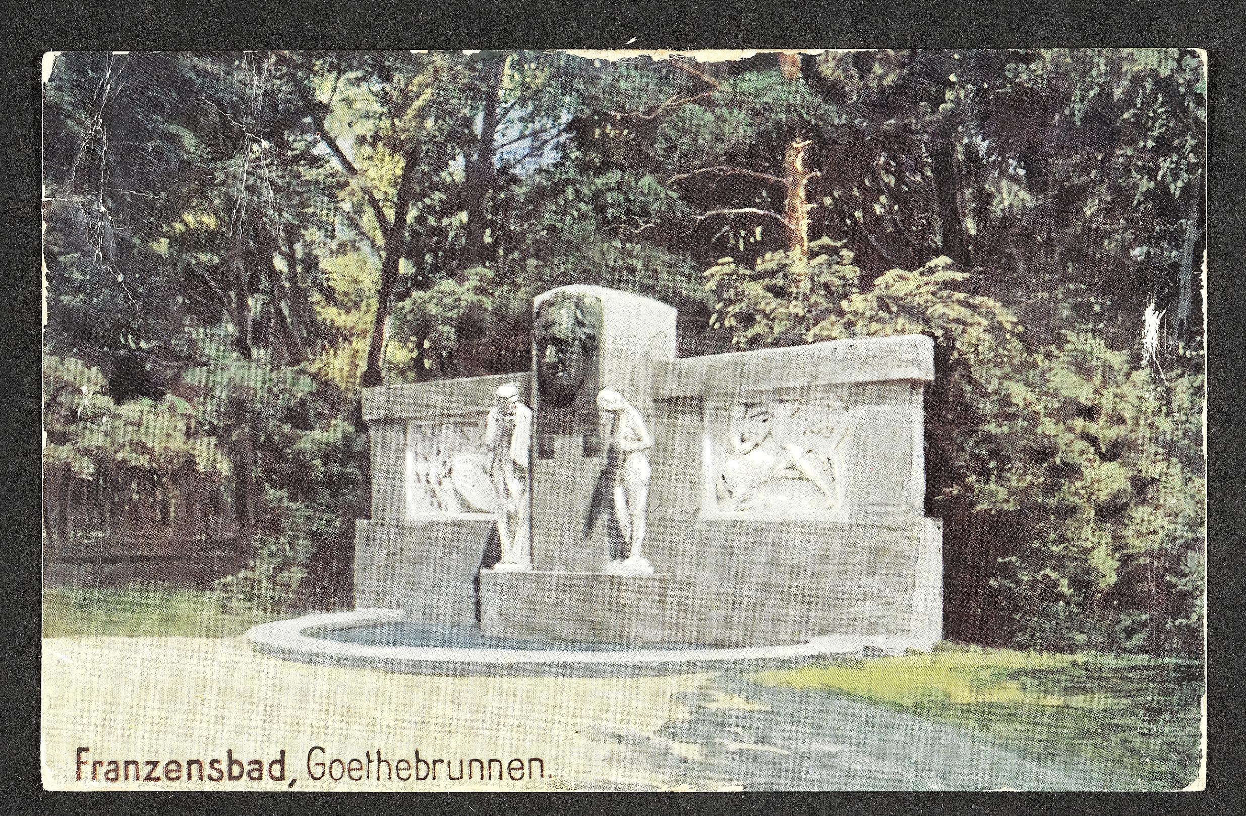 | Beschreibung | Ansichtskarte mit Motiv Franzensbad, Goethebrunnen, und persönlicher Nachricht |