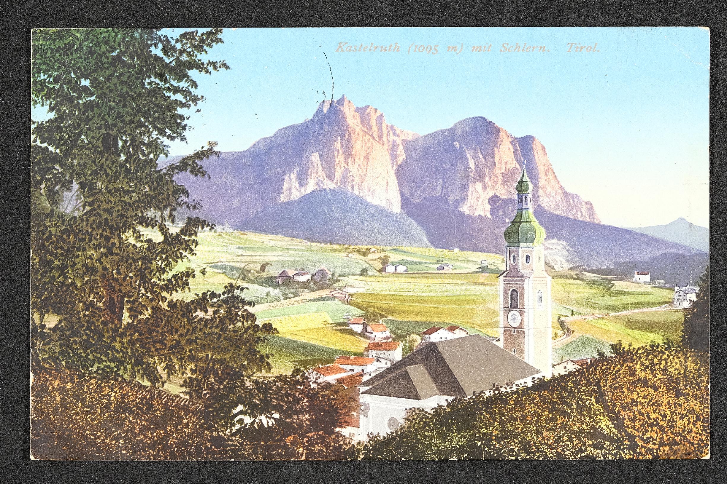 | Beschreibung | Ansichtskarte mit Motiv Kastelruth mit Schlern, Tirol, und persönlicher Nachricht |