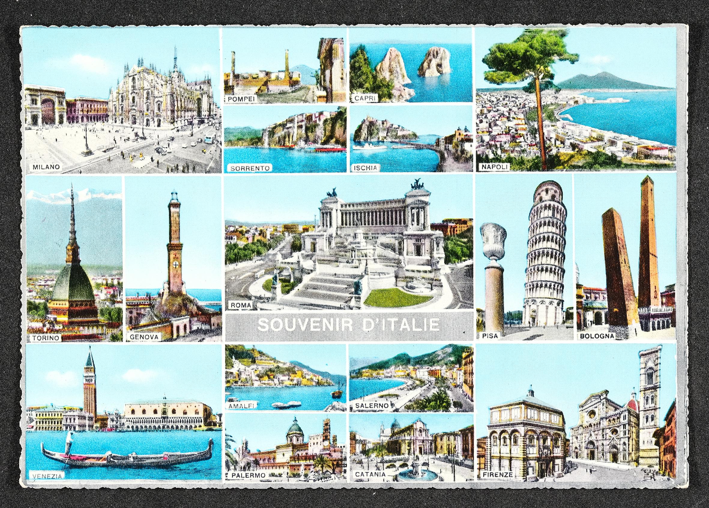 | Beschreibung | Ansichtskarte mit Motiv Städte in Italien und persönlicher Nachricht |