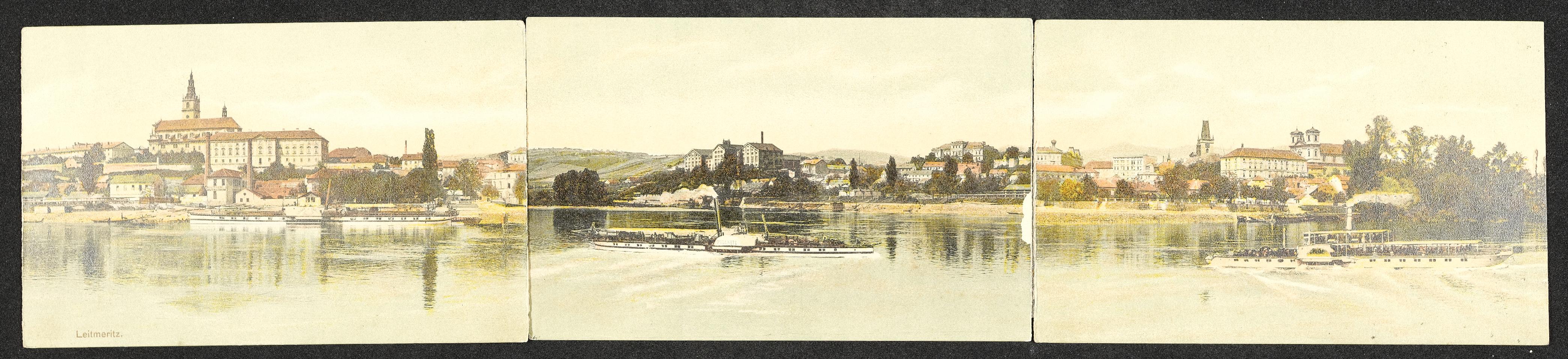 | Beschreibung | dreiteilige Ansichtskarte mit Motiven aus Leitmeritz vom Fluss Labe gesehen mit persönlicher Nachricht |