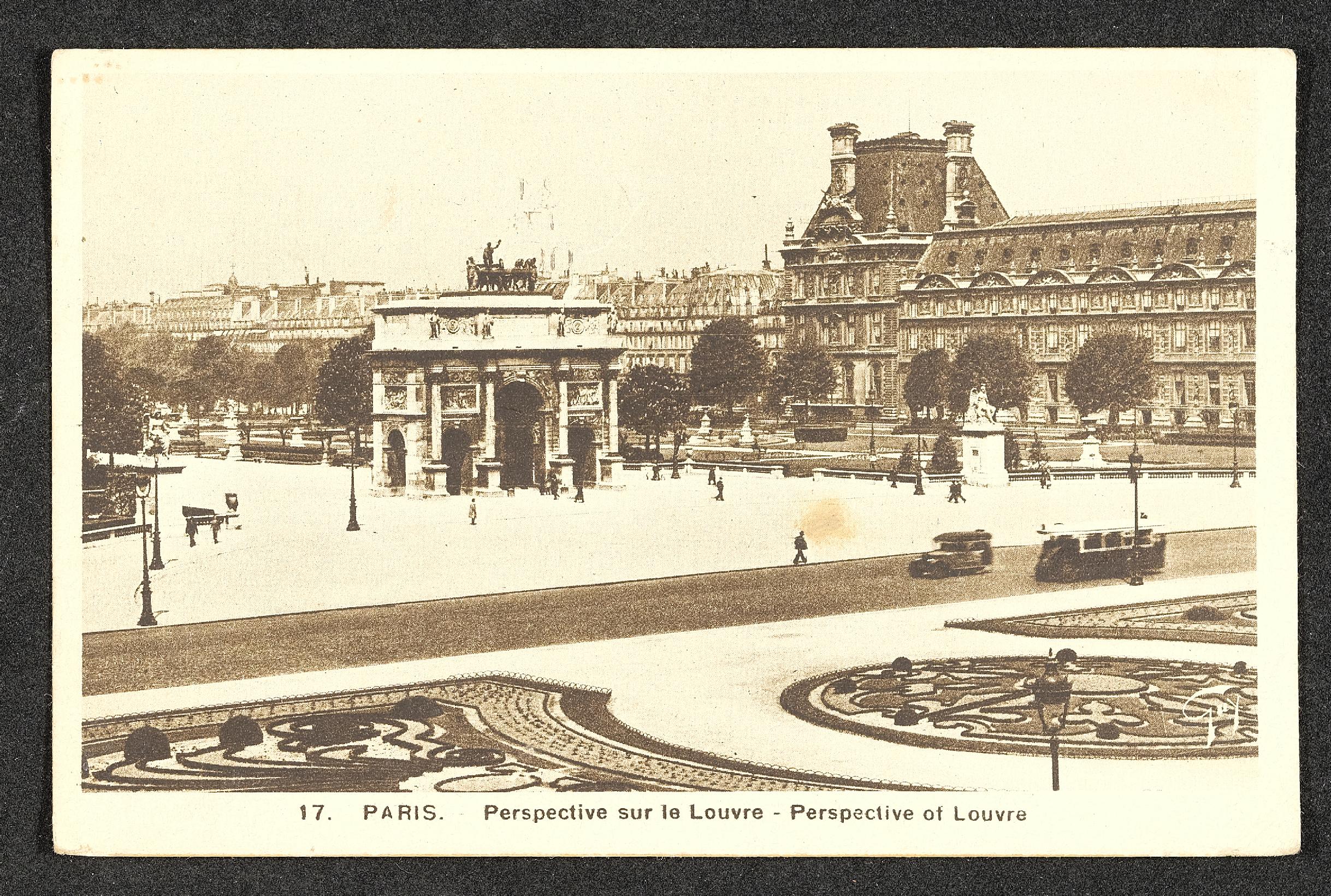 | Beschreibung | Ansichtskarte mit Motiv Paris, Perspective sur le Louvre mit persönlicher Nachricht |