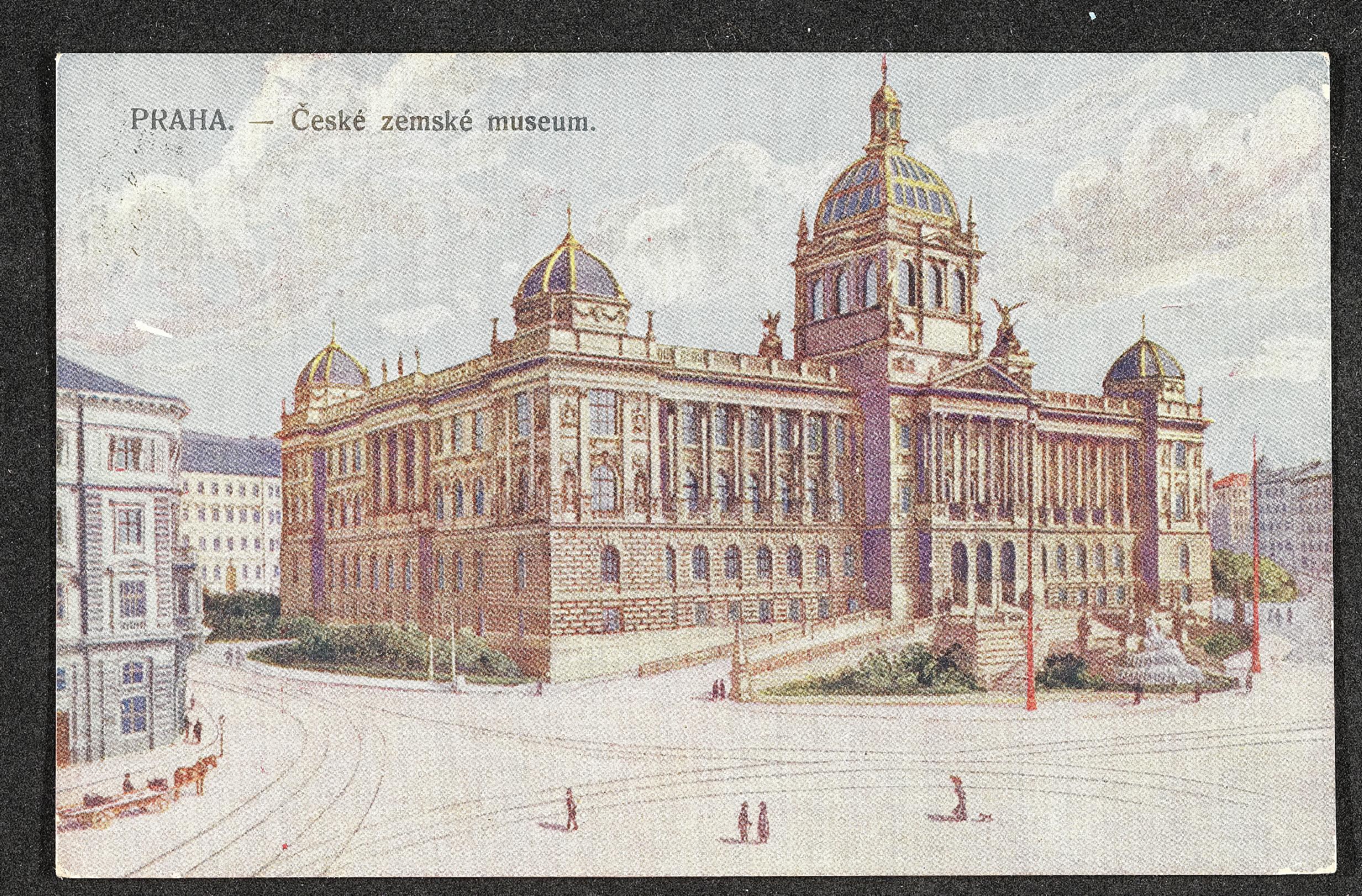 | Beschreibung | Ansichtskarte mit Motiv Prag, Tschechisches Naturkundemuseum, und persönlicher Nachricht |