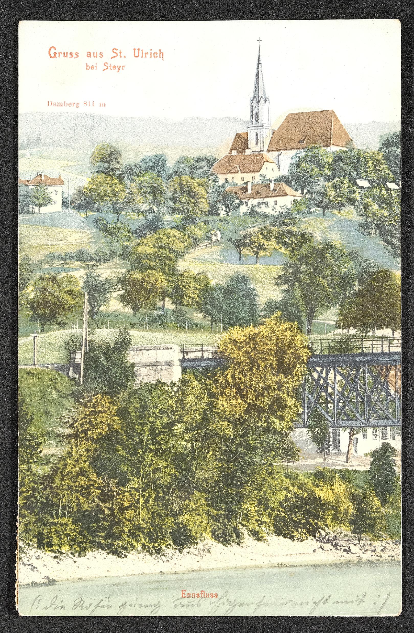 | Beschreibung | Ansichtskarte mit Motiv Gruss aus St. Ulrich bei Steyr mit persönlicher Nachricht |