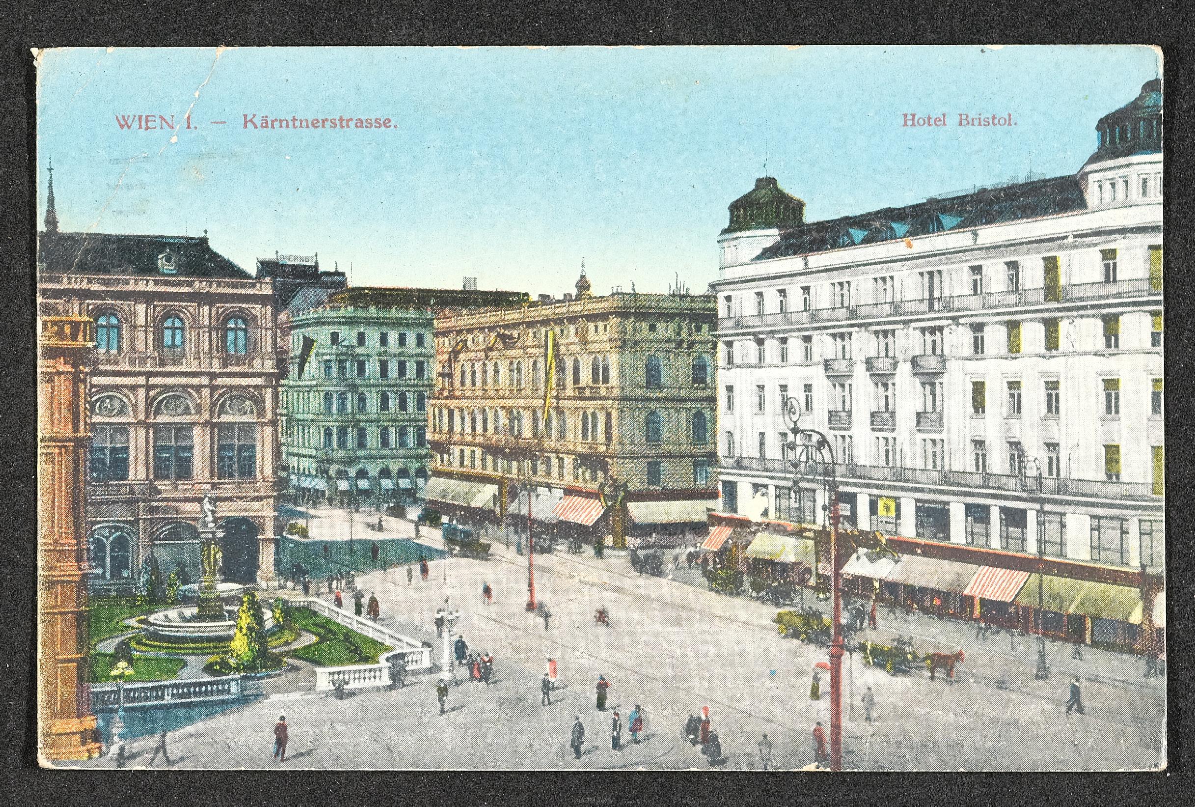 | Beschreibung | Ansichtskarte mit Motiv Wien, Kärntnerstrasse und Hotel Bristol, mit persönlicher Nachricht |