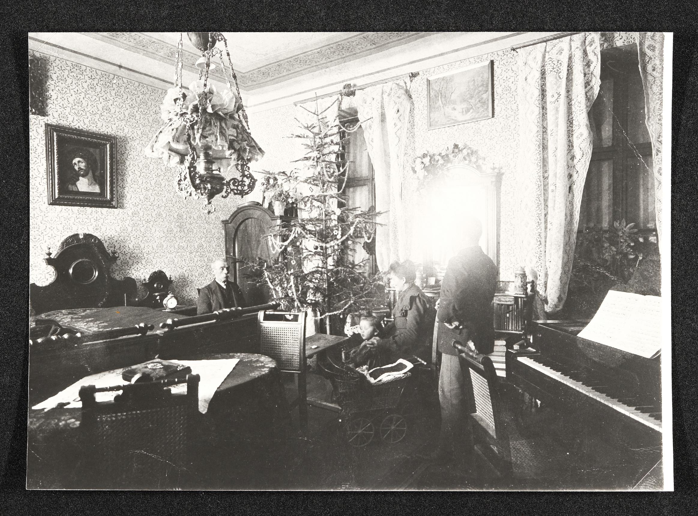 | Beschreibung | Weihnachten einer bürgerlichen Familie, Aufnahme vom Wohn- und Schlafraum mit Christbaum |