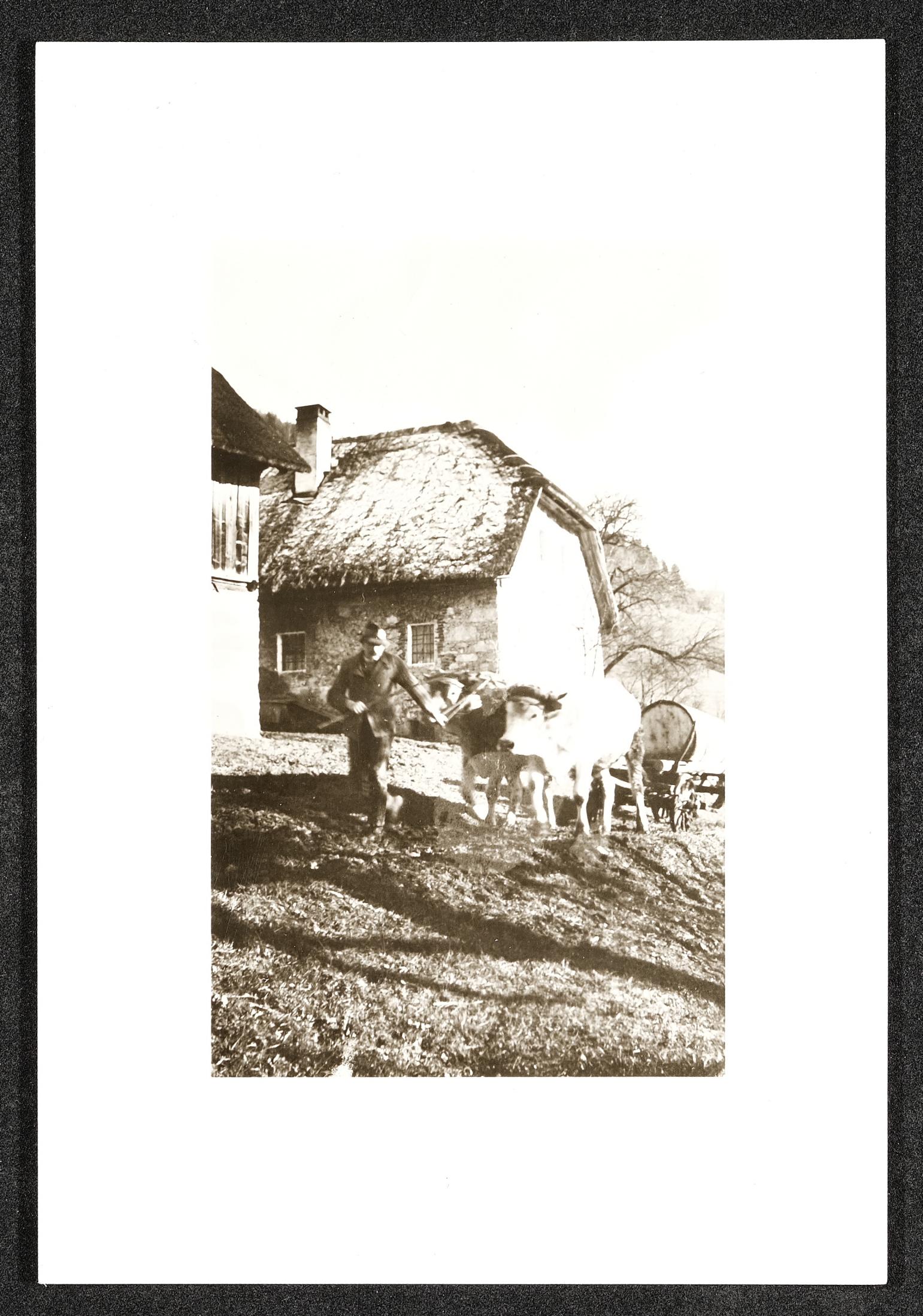 | Beschreibung | Bauer mit Ochsengespann beim Ausbringen von Jauche |