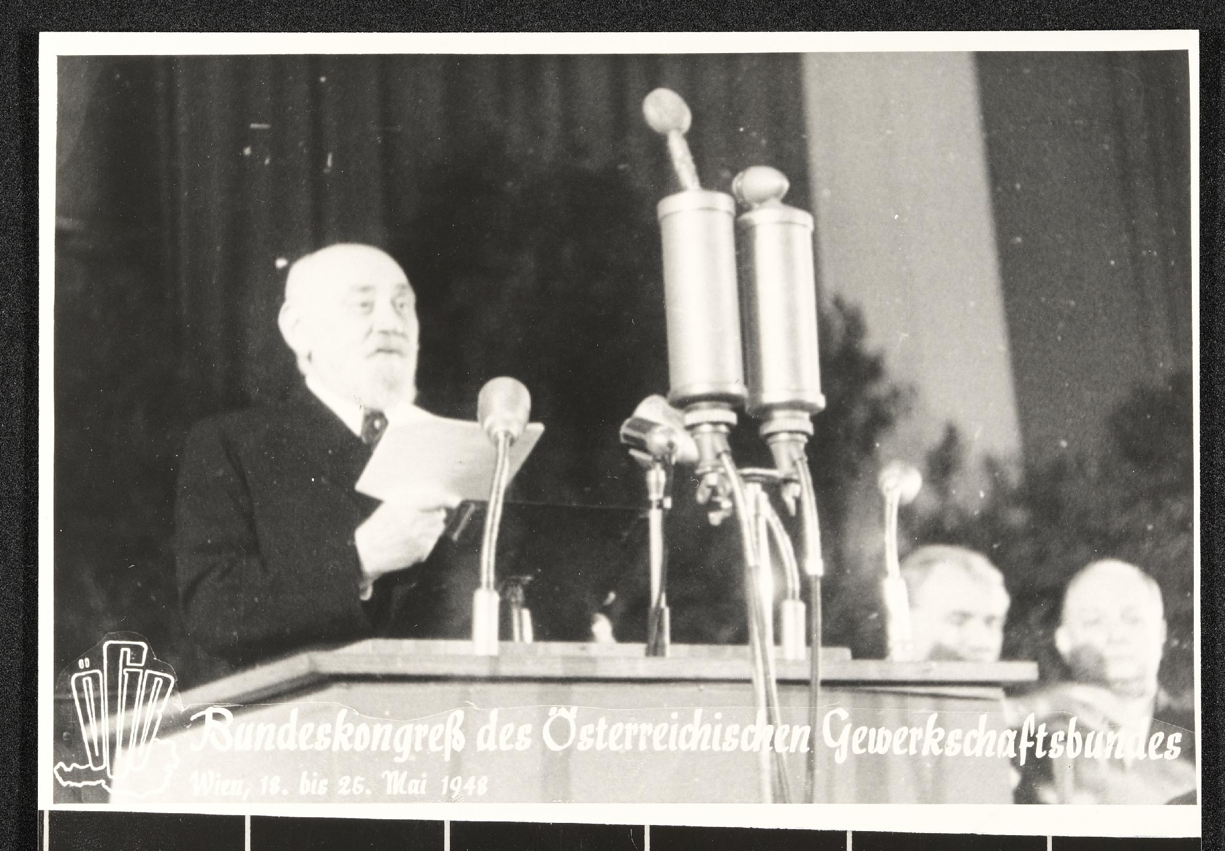 | Beschreibung | Bundeskongress des Österreichischen Gewerkschaftsbundes (ÖGB) in Wien, 18. bis 25. Mai 1948 |