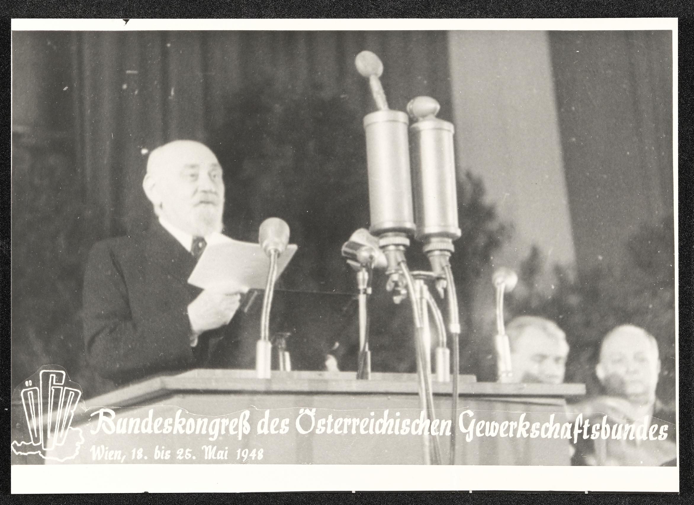 | Beschreibung | Bundeskongress des Österreichischen Gewerkschaftsbundes (ÖGB) in Wien, 18. bis 25. Mai 1948 |