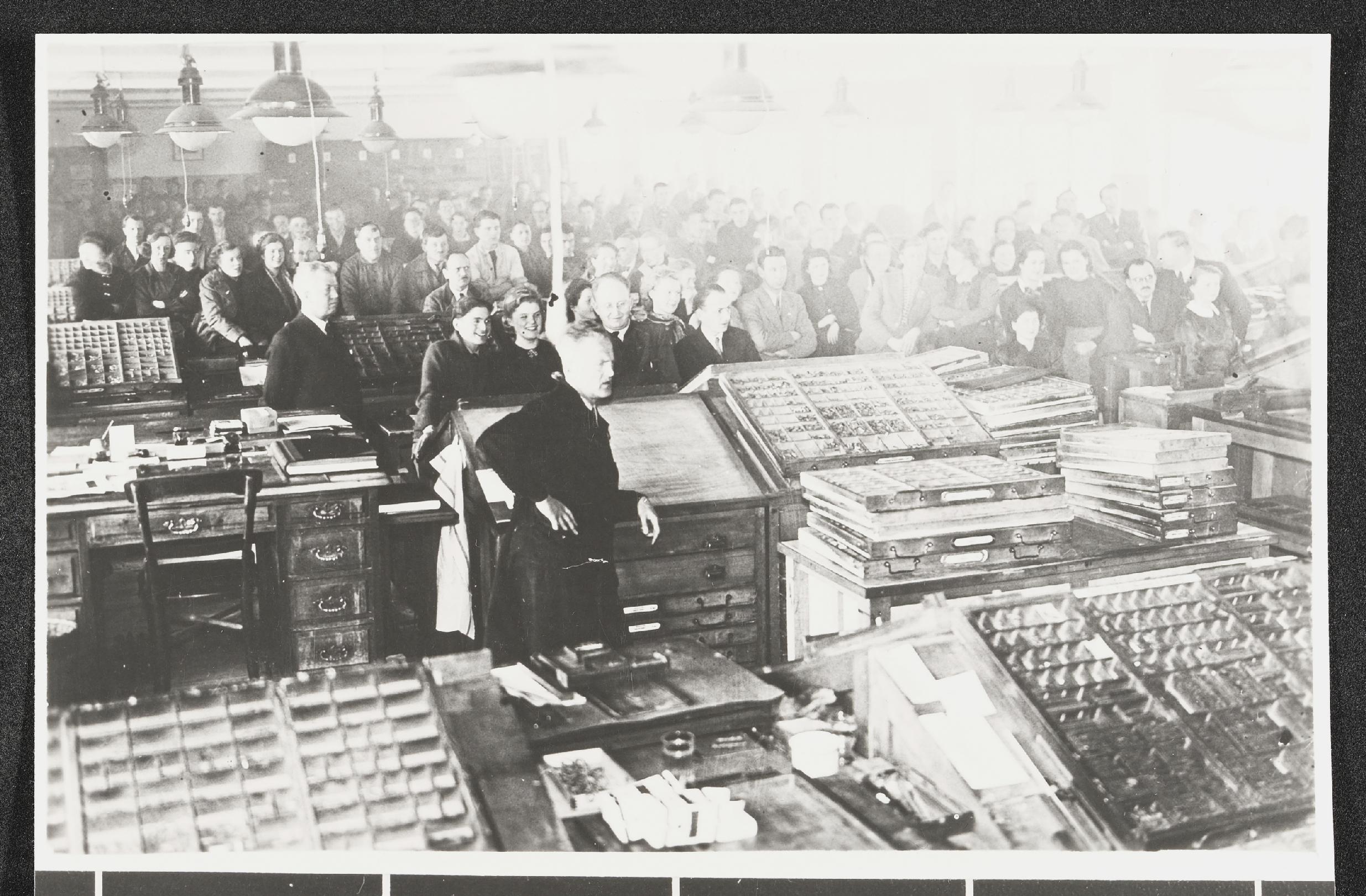 | Beschreibung | Belegschaft der Innsbrucker Nachrichten in der Setzerei |