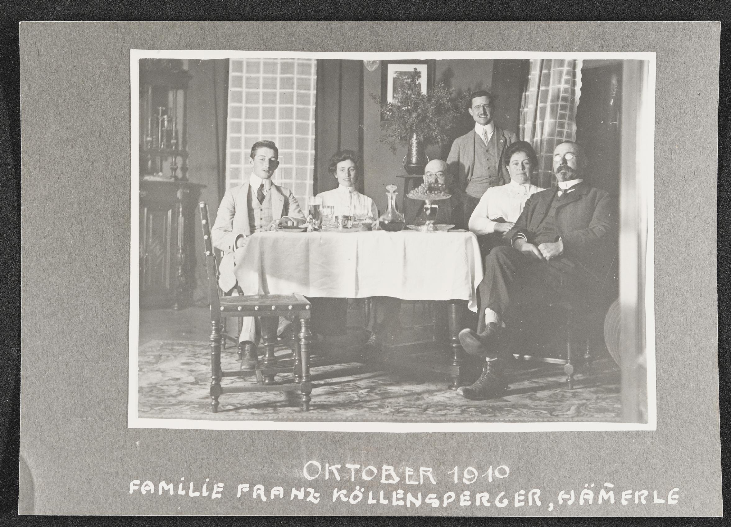 | Beschreibung | Mitglieder der Familie Köllensperger und Hämmerle am gedeckten Tisch im Wohzimmer im Oktober 1910 |