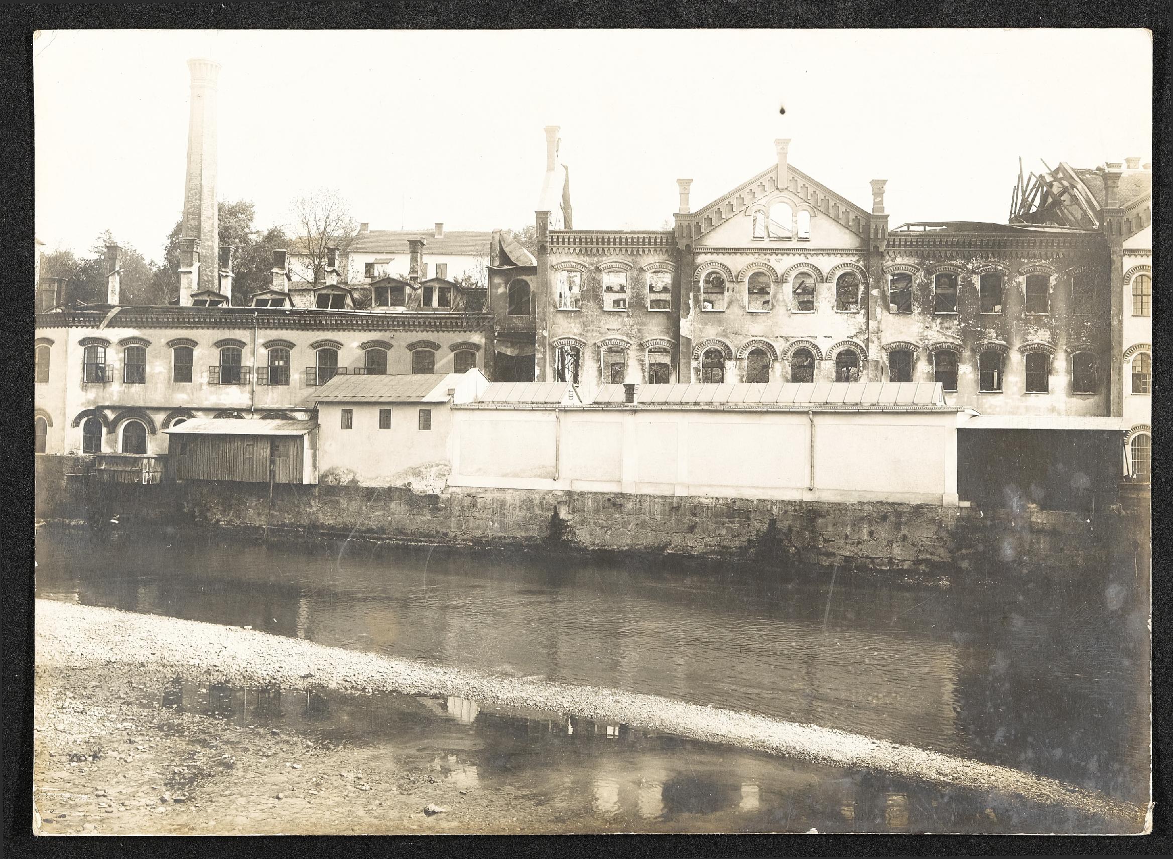 | Beschreibung | Abgebranntes Fabriksgebäude der Waffenfabrik im Wehrgraben in Steyr, Objekt IX, 1. Mai 1913 |