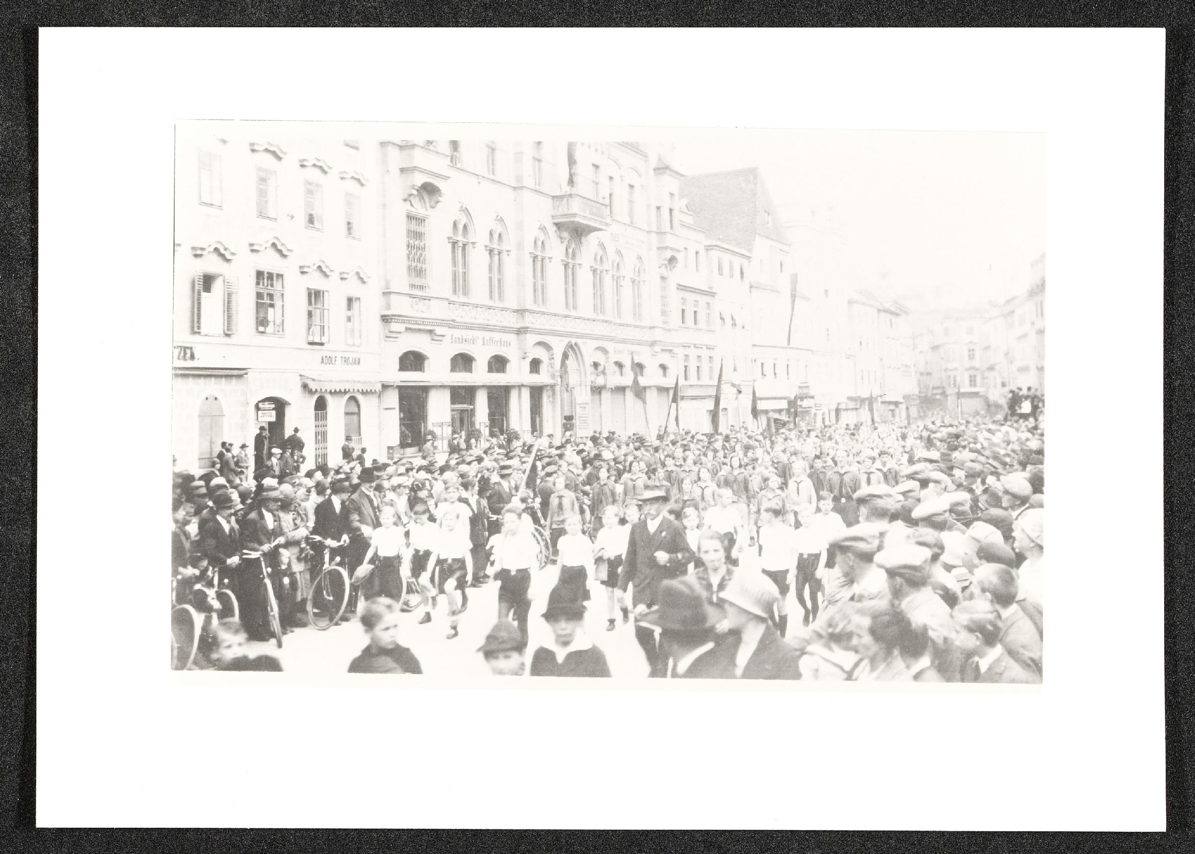 | Beschreibung | Maifeier, 1. Mai 1927 in Steyr, Stadtplatz, abgedruckt in Arbeit, Mensch, Maschine Seite 261 |