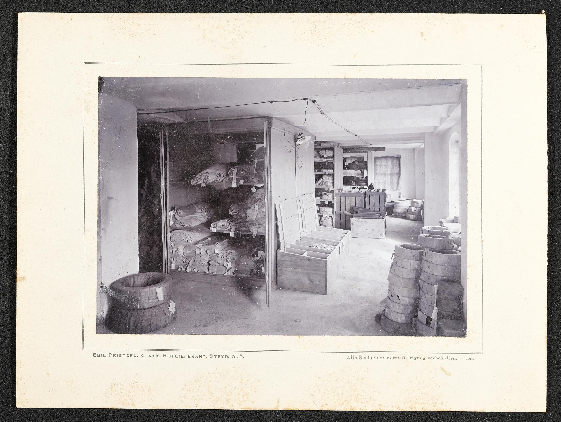 | Beschreibung | Lagerraum der Kottondruckerei und Färberei Raimund Waller in der Wehrgrabengasse 47-49 in Steyr |
