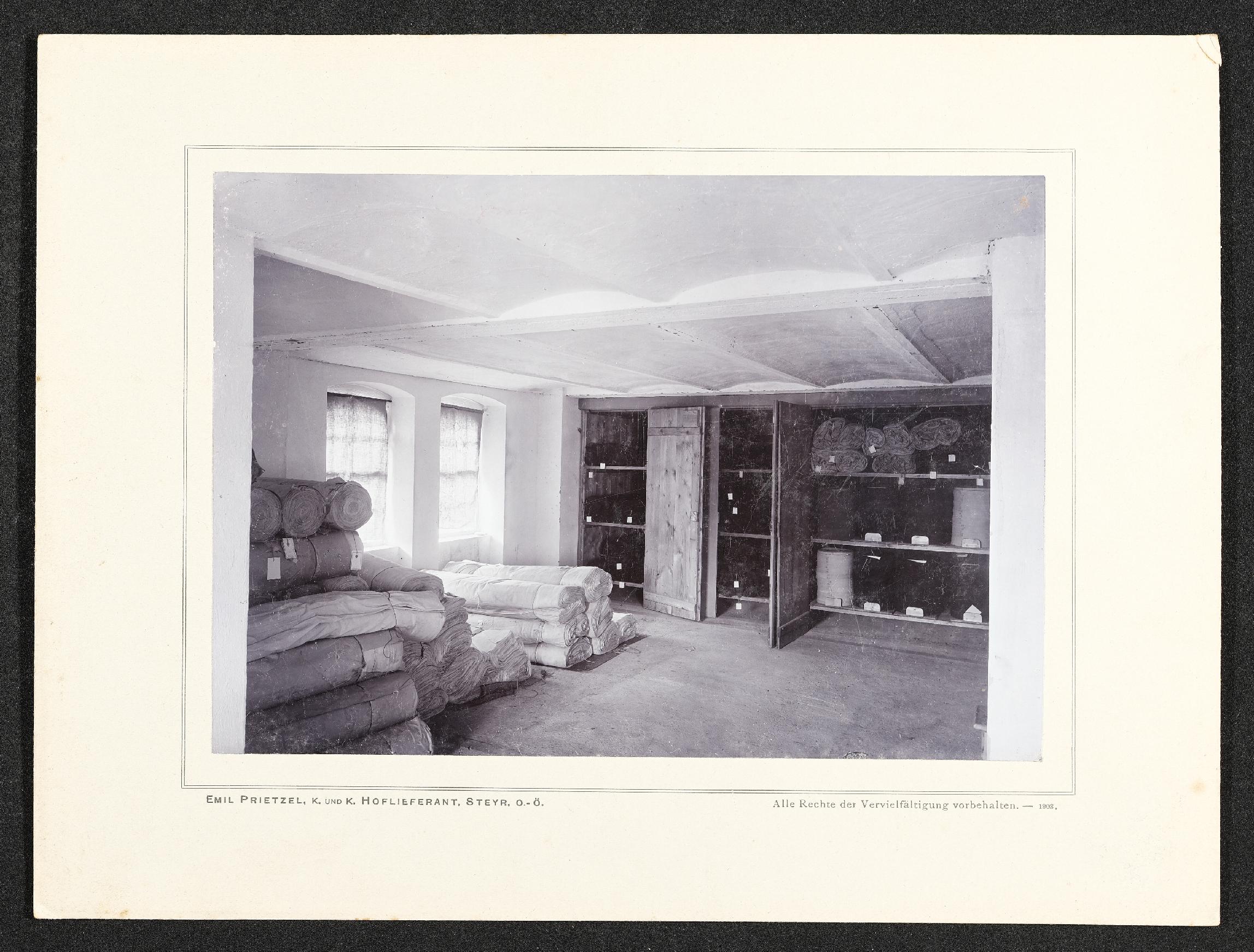 | Beschreibung | Lagerraum der Kottondruckerei und Färberei Raimund Waller in der Wehrgrabengasse 47-49 in Steyr |