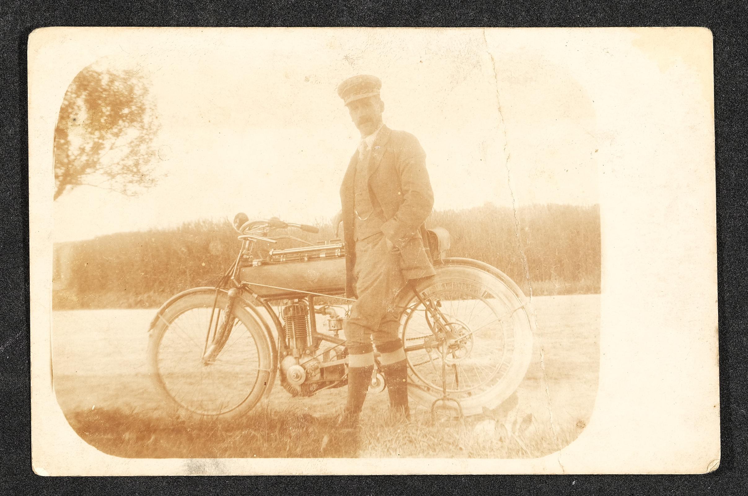| Beschreibung | Bäckermeister Johann Auracher mit Motorrad |