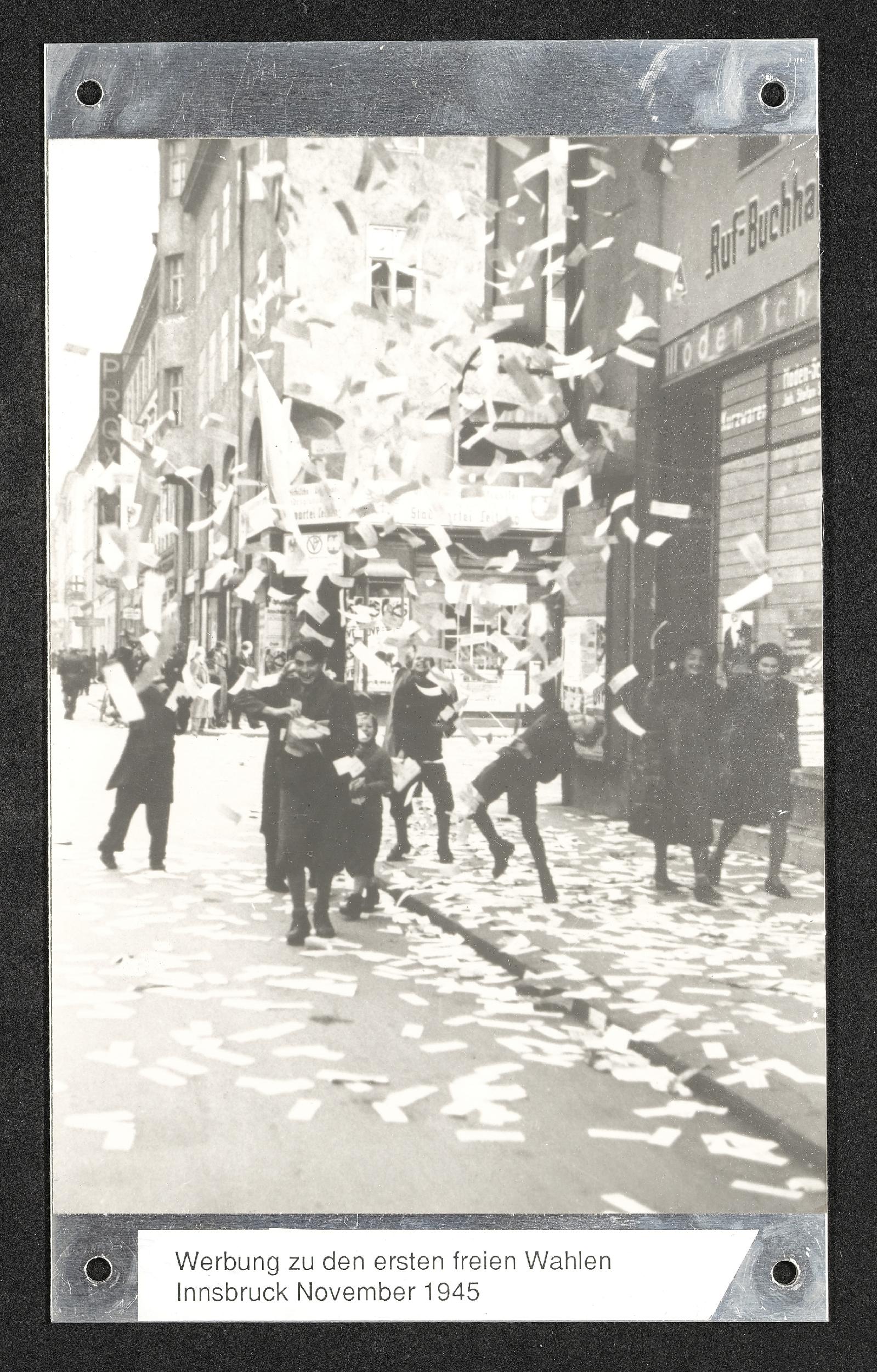 | Beschreibung | Werbung zu den ersten freien Wahlen, Innsbruck im November 1945 |