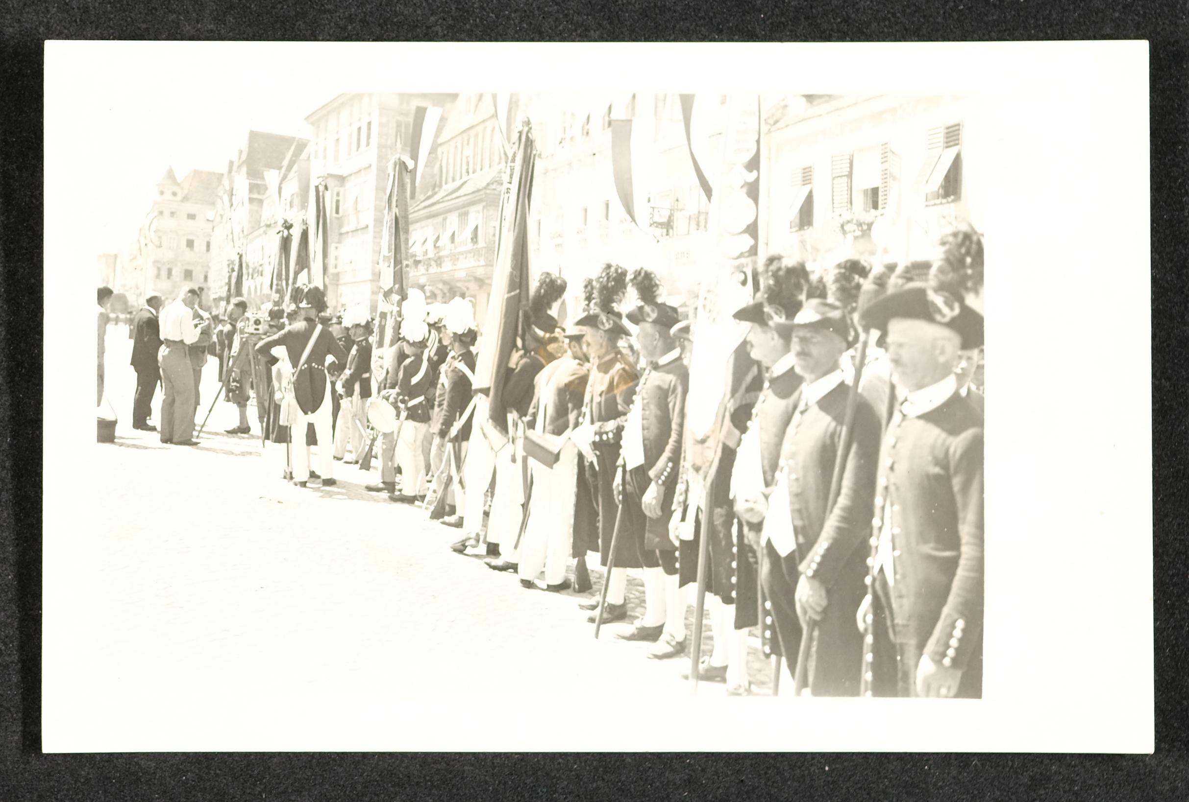 | Beschreibung | 550-jähriges Bestandsfest des Bürgerkorps Steyr auf dem Stadtplatz von Steyr im August 1933 |