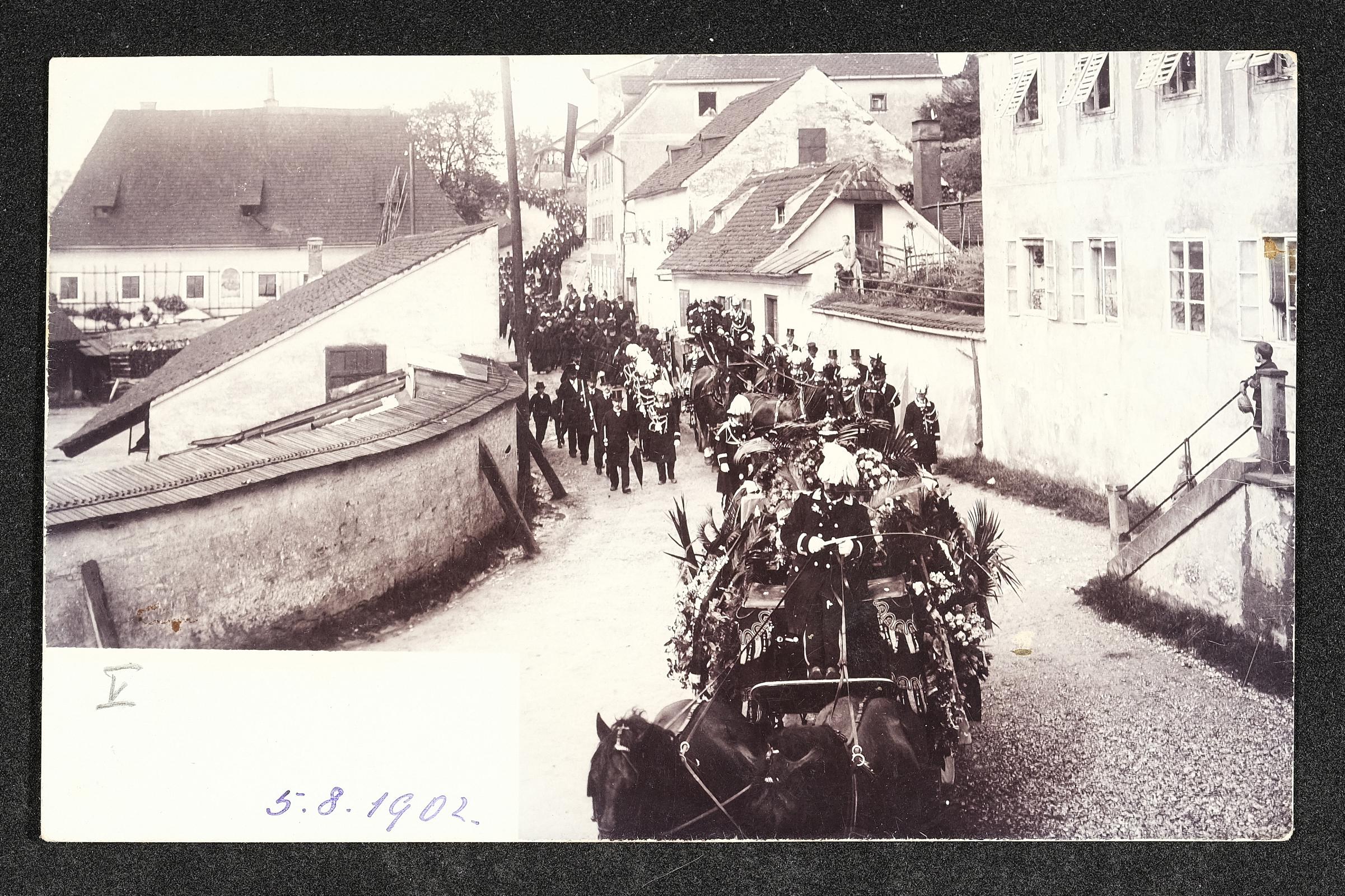| Beschreibung | Leichenzug anlässlich des Begräbnisses des deutschnationalen Bürgermeisters Johann Redl in der Dukartstraße in Steyr am 5. August 1902 |